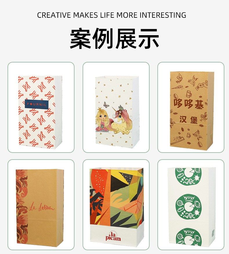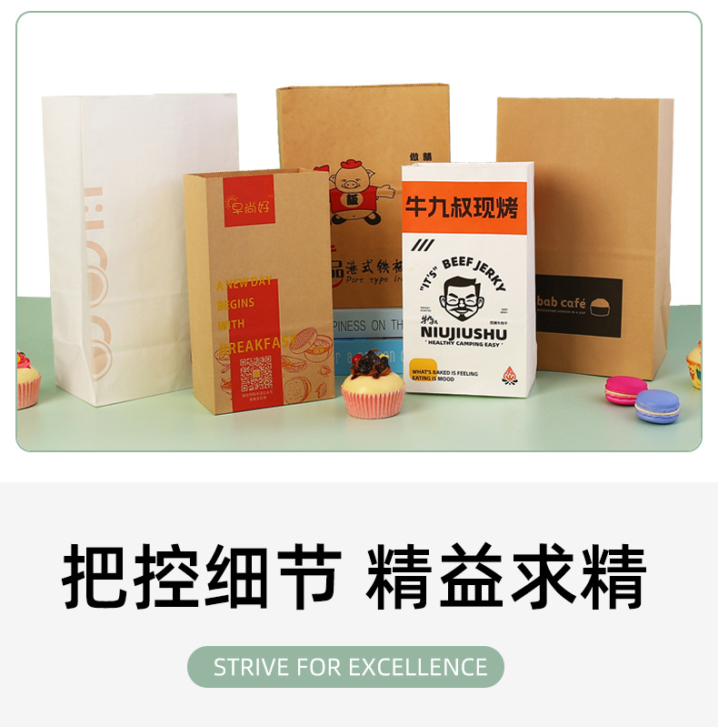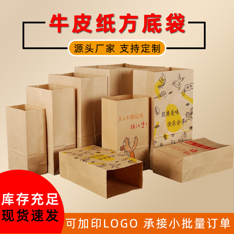사각 바닥 크래프트 종이 가방 필름 테이크 아웃 포장 가방 스낵 식품 종이 가방 기름 방지 종이 가방 맞춤형 국경