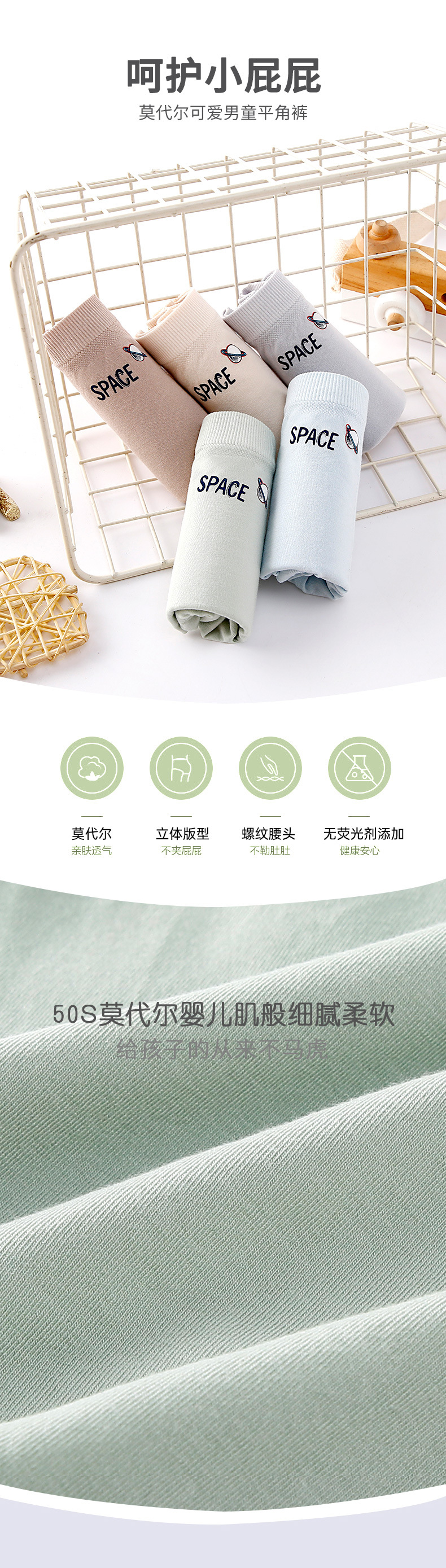 여름용 얇은 모달 클래스 A 아동 속옷, 중대형 아동 사각팬티, 아동용 편안한 사각팬티스토어 가기