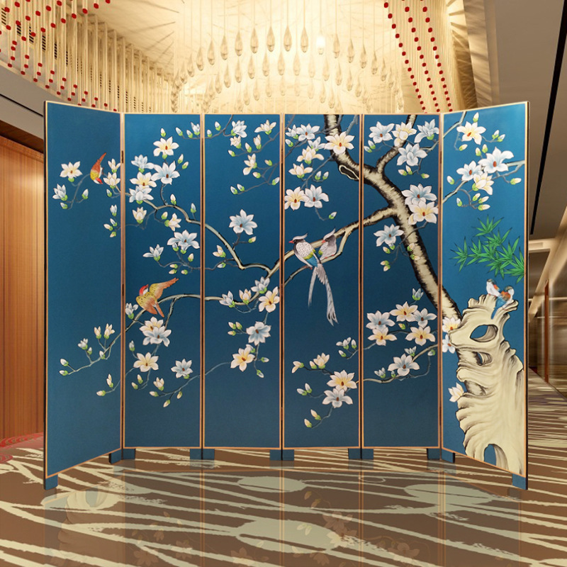 페인트 스크린 순수 손으로 그린 파티션 거실 입구 문 보호소 침실 사무실 호텔 꽃과 새 그림 접기 모바일스토어 가기