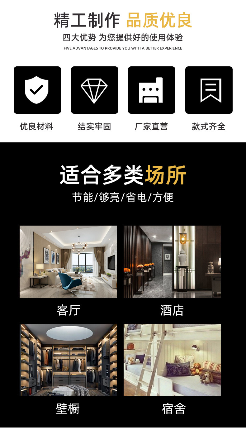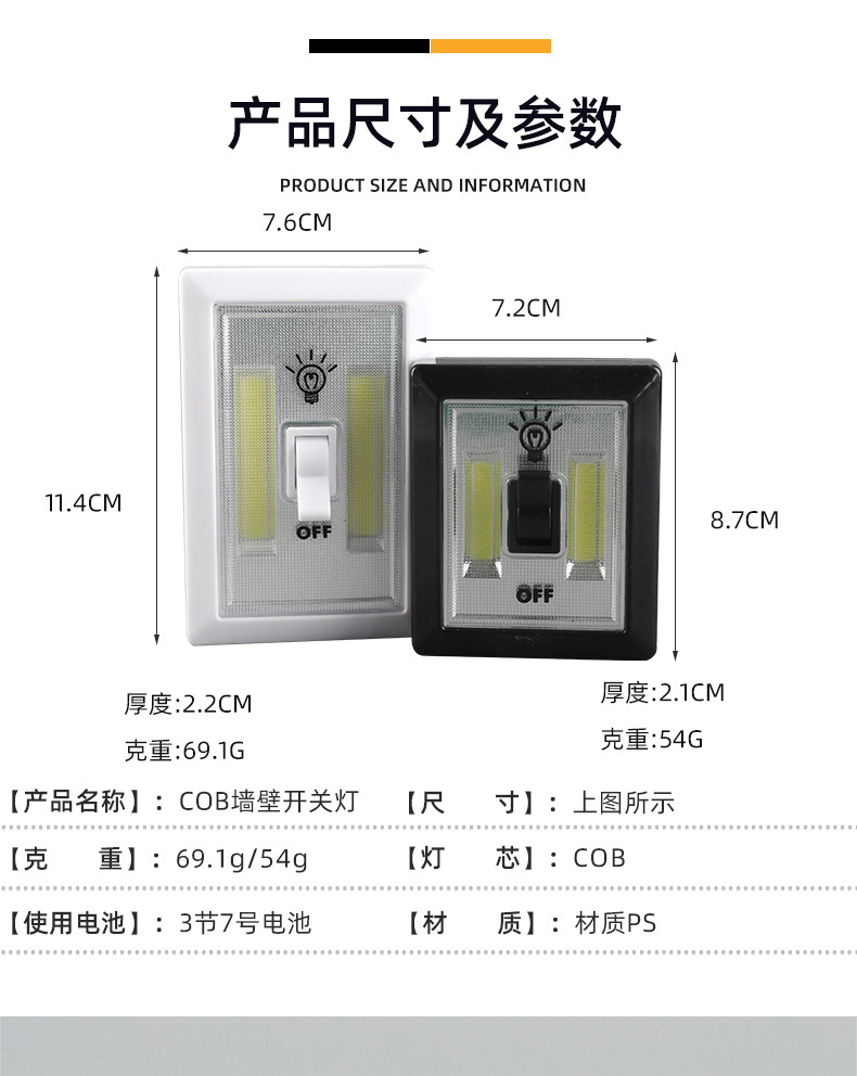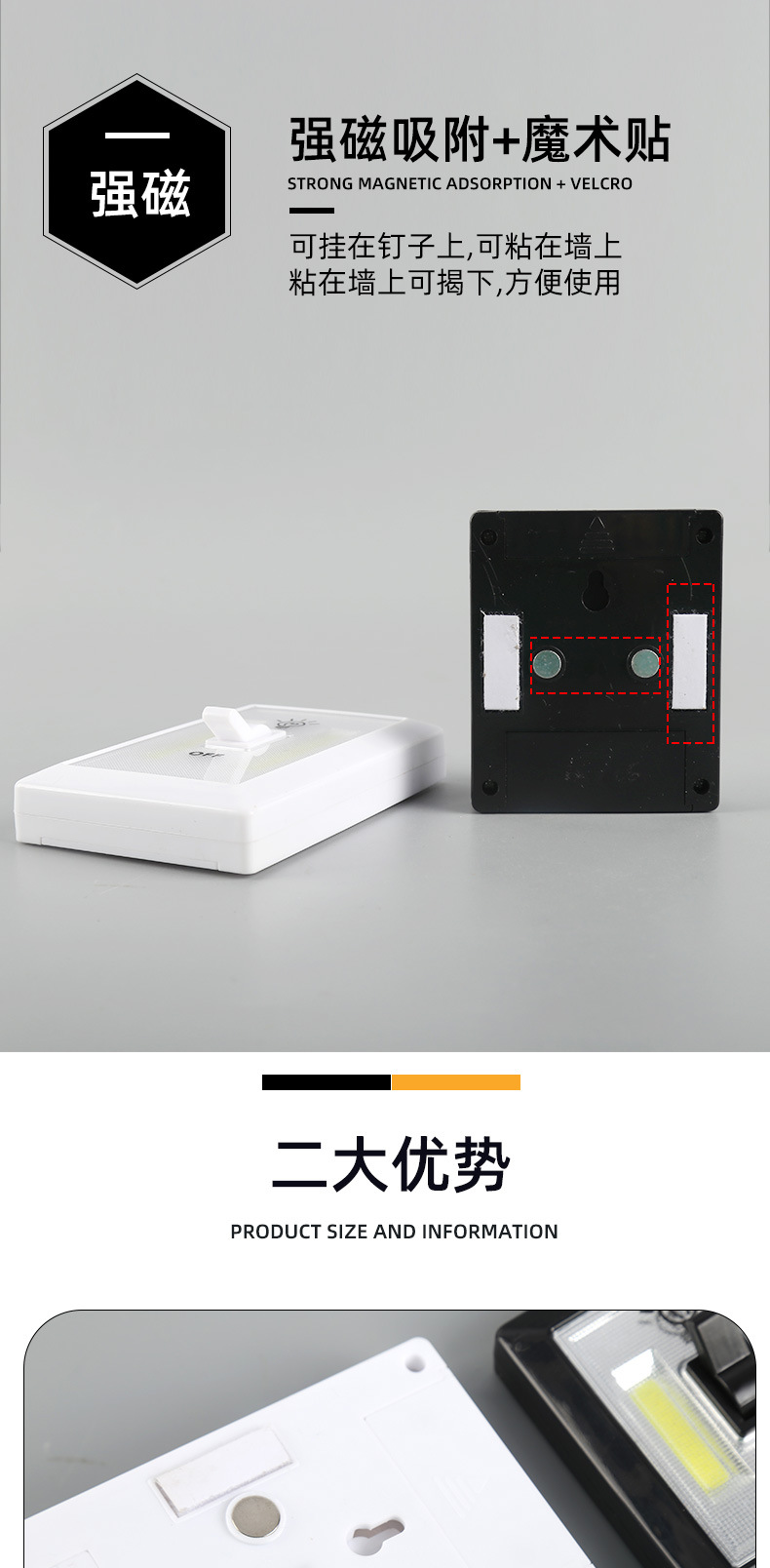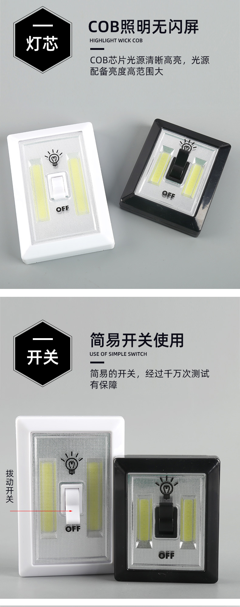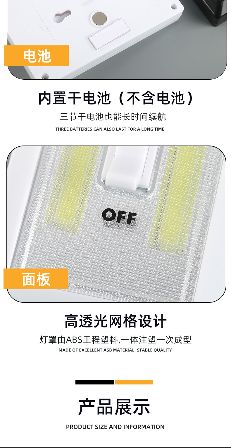 자석 벨크로 캐비닛 조명 복도 거실 비상 조명 기능 COB 벽 스위치 조명 공장 도매스토어 가기
