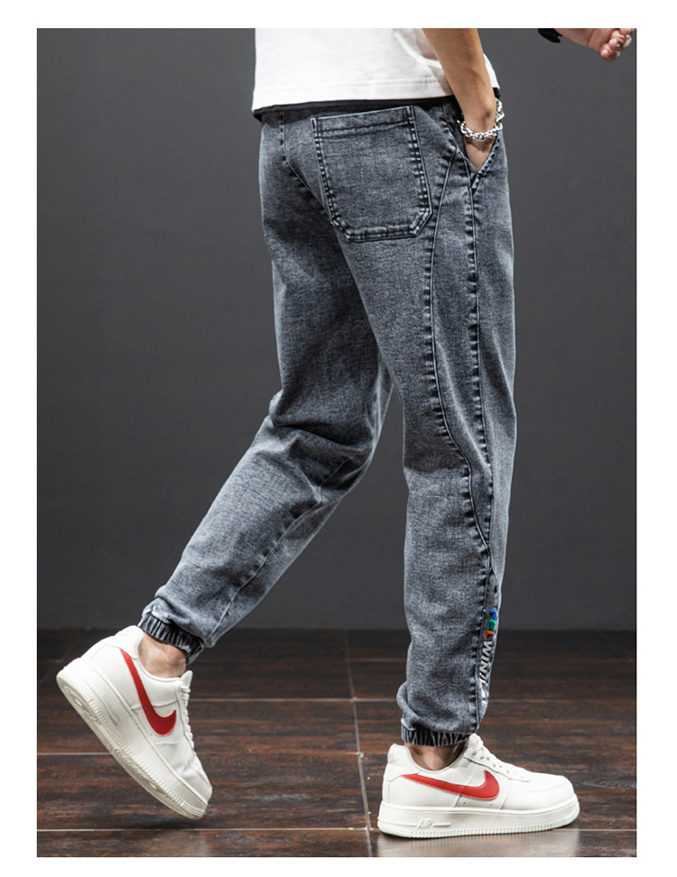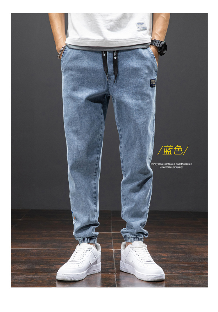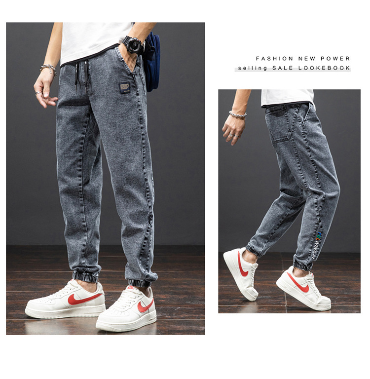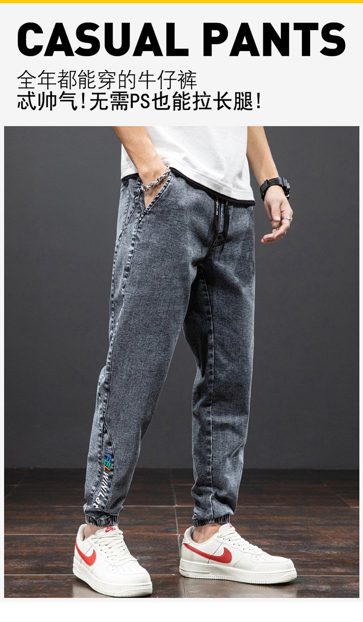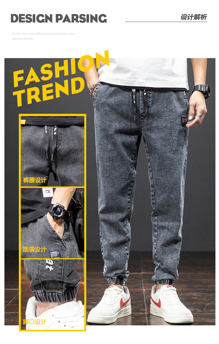 가을 유행 브랜드 청바지 남자의 초대형 느슨한 졸라매는 끈 발목 바지 유행 뚱뚱한 캐주얼 바지스토어 가기