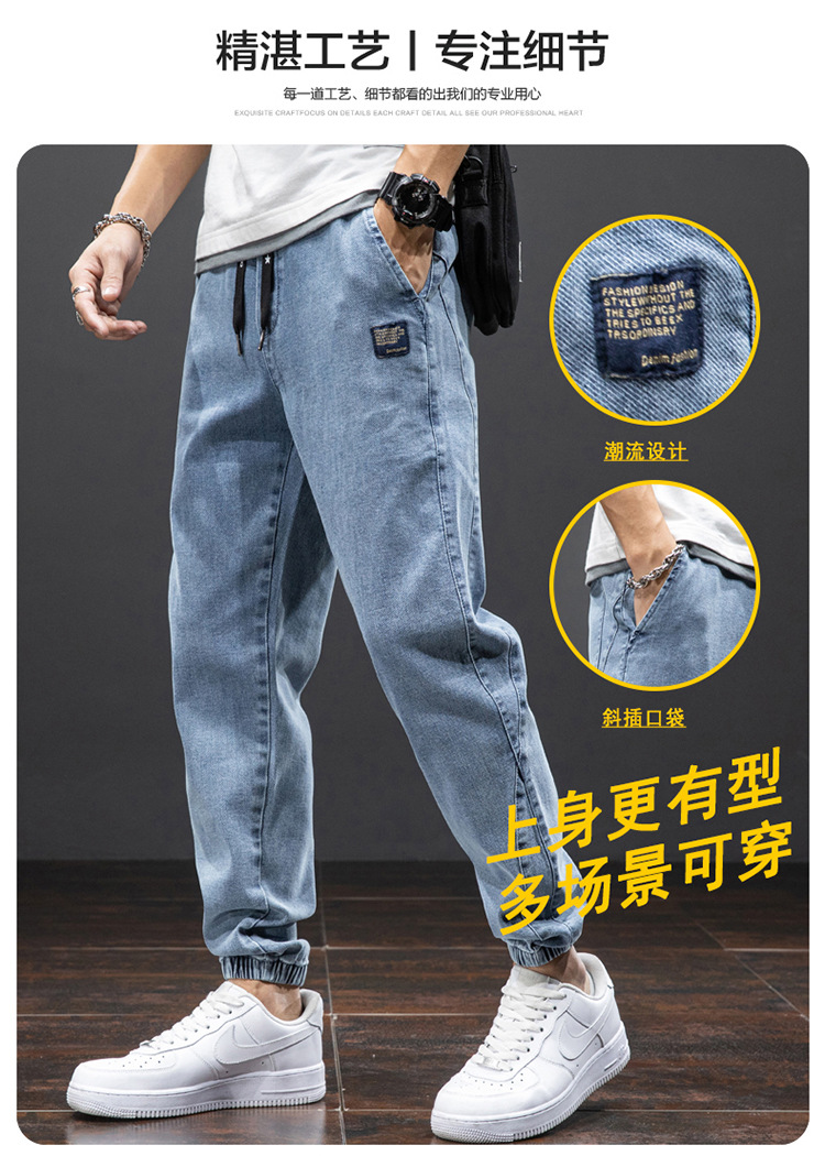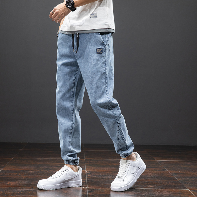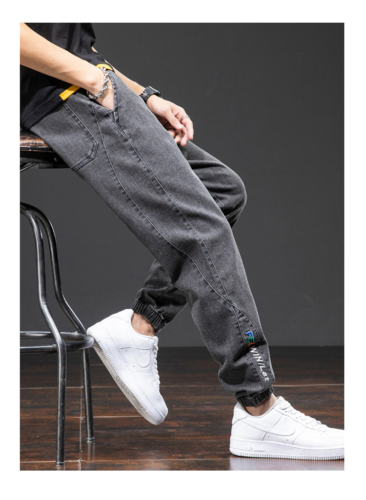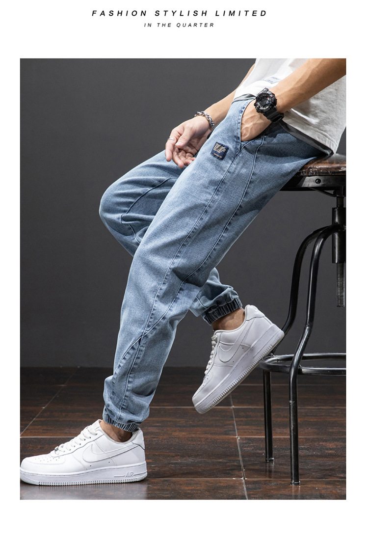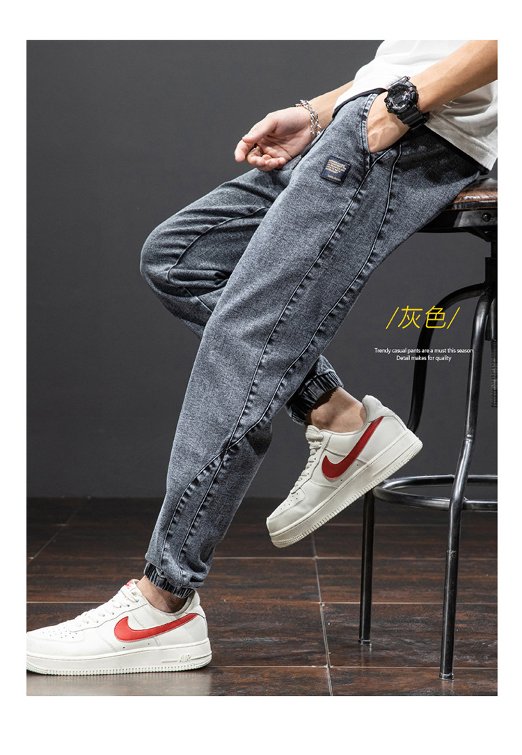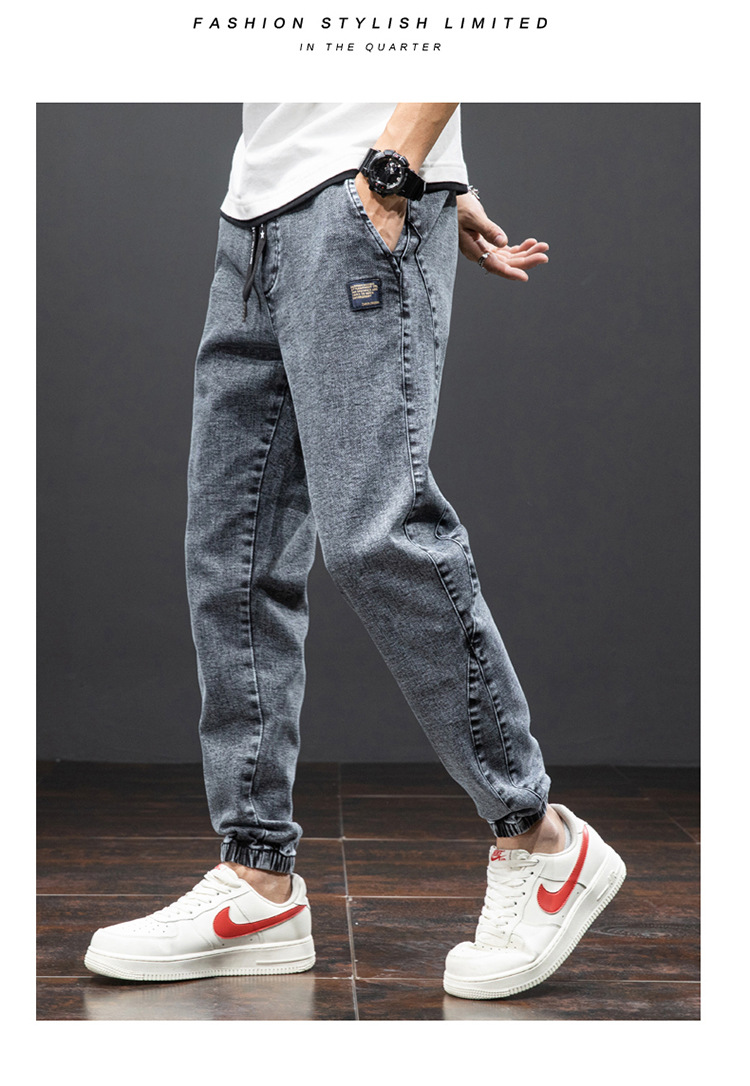 가을 유행 브랜드 청바지 남자의 초대형 느슨한 졸라매는 끈 발목 바지 유행 뚱뚱한 캐주얼 바지스토어 가기