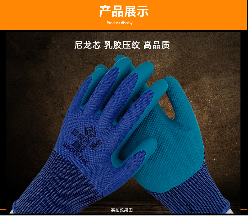 Jixing의 미래 S600 나일론 함침 양각 장갑 사이트 교수형 접착제 노동 장갑 고무 보호 장갑스토어 가기