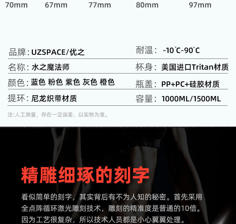 Youzhi 대용량 스포츠 워터 컵 남성용 피트니스 낙하 방지 야외 컵 어린이 플라스틱 초등학교 드라이버 여행 주전자스토어 가기