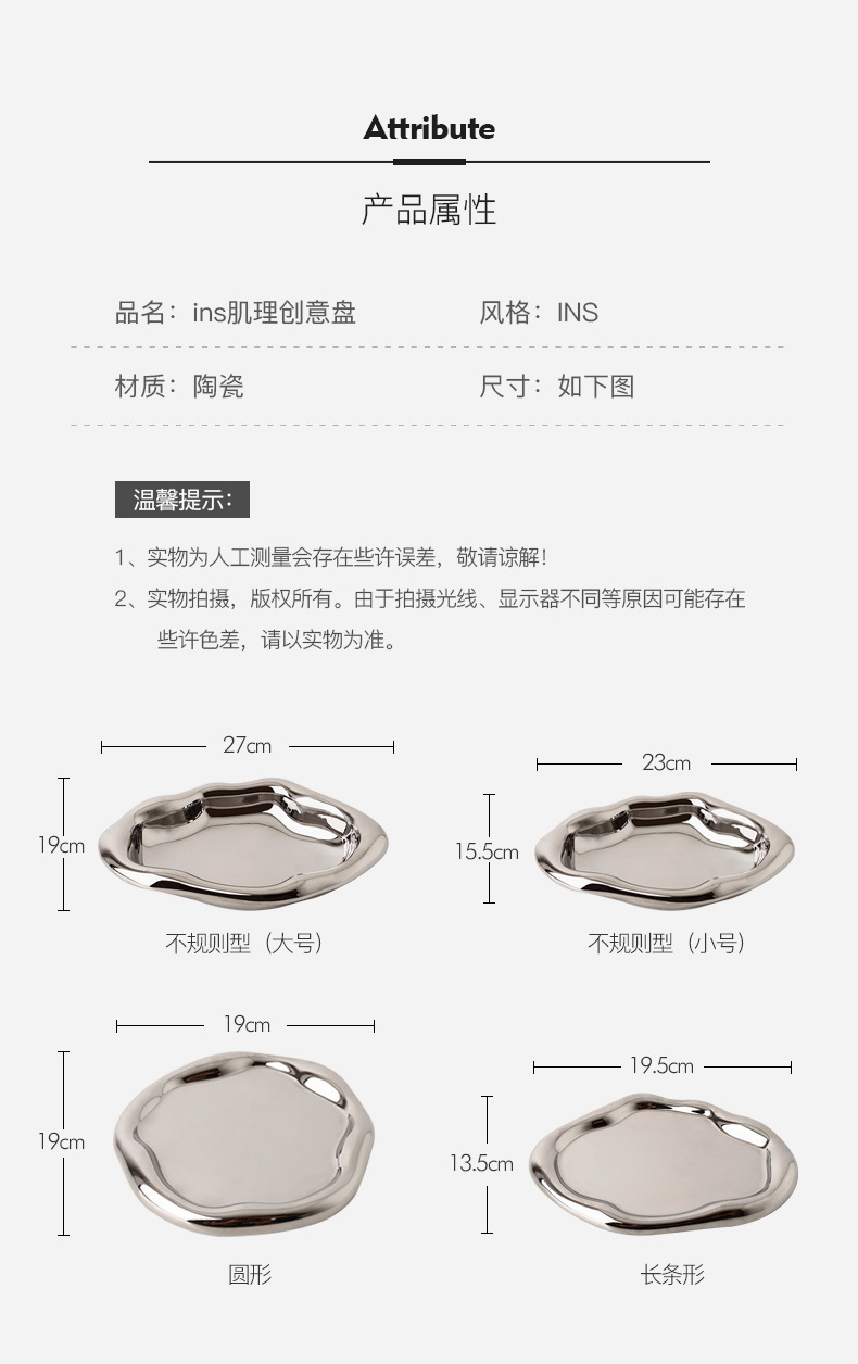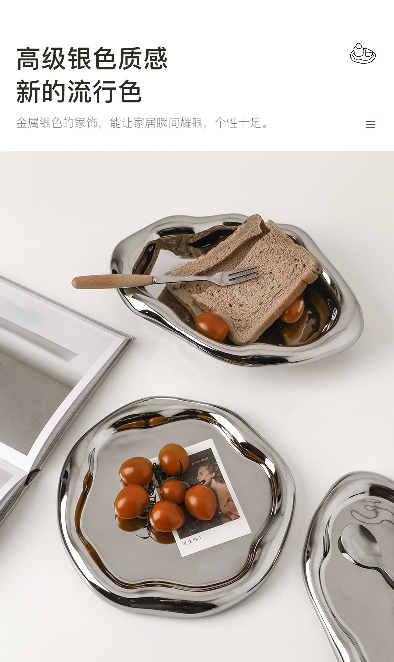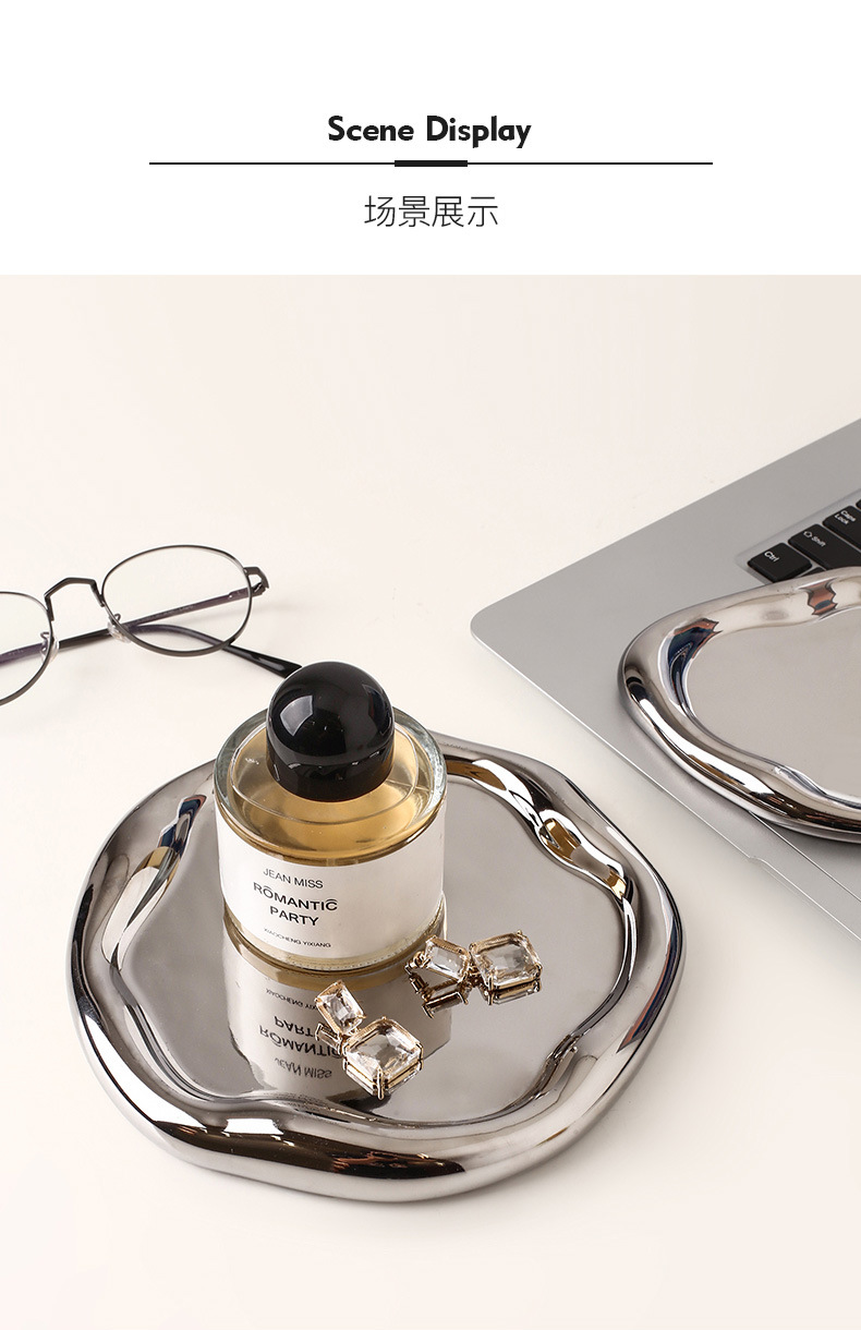 Behanmei ins 실버 세라믹 트레이 쥬얼리 트레이 키 보관함 쥬얼리 디스플레이 트레이 장식 ins 스타일 장식품