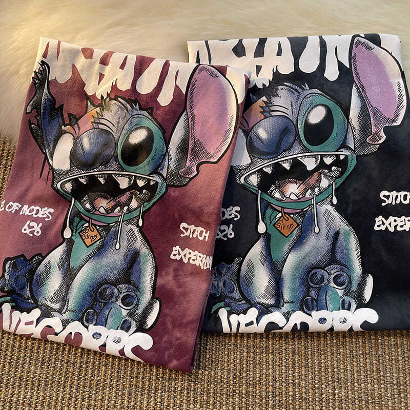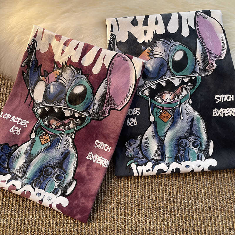 국경 유럽과 미국의 2025 여름 새 커플 착용 타이 염색 느슨한 반팔 티셔츠 여학생 스타일 프린트 탑