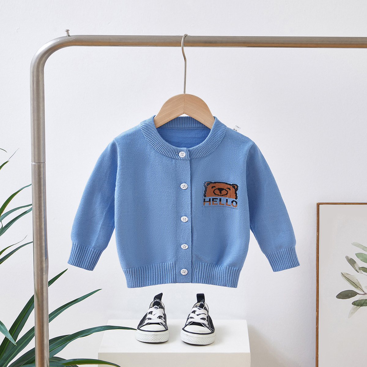 2025년 신상 아동복 스웨터 봄 유아용 라운드 넥 솔리드 컬러 재킷 소녀 면 니트 가디건을 생방송으로 제공합니다.스토어 가기