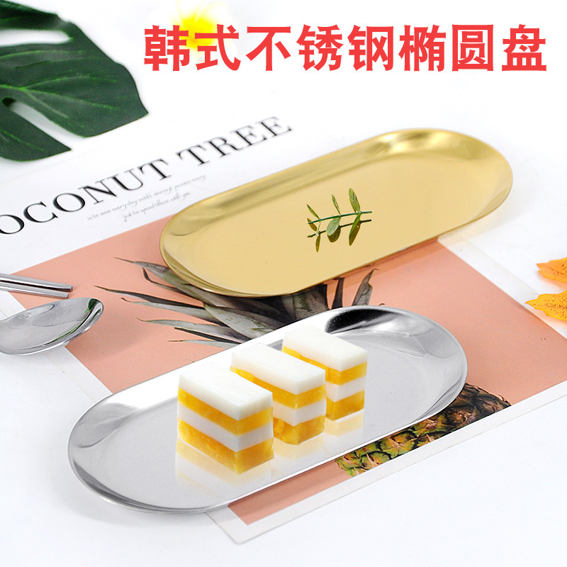采用优质食品级不锈钢材质,耐腐蚀不易褪色,适合日常使用,甜品店料理店盛放料理糕点等,椭圆形边角设计,莹润圆滑,随性而又不失优雅,色泽亮丽。