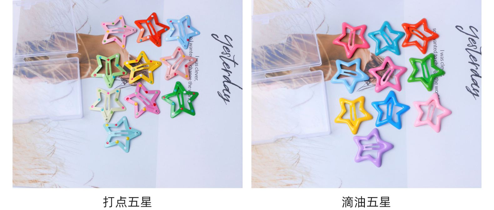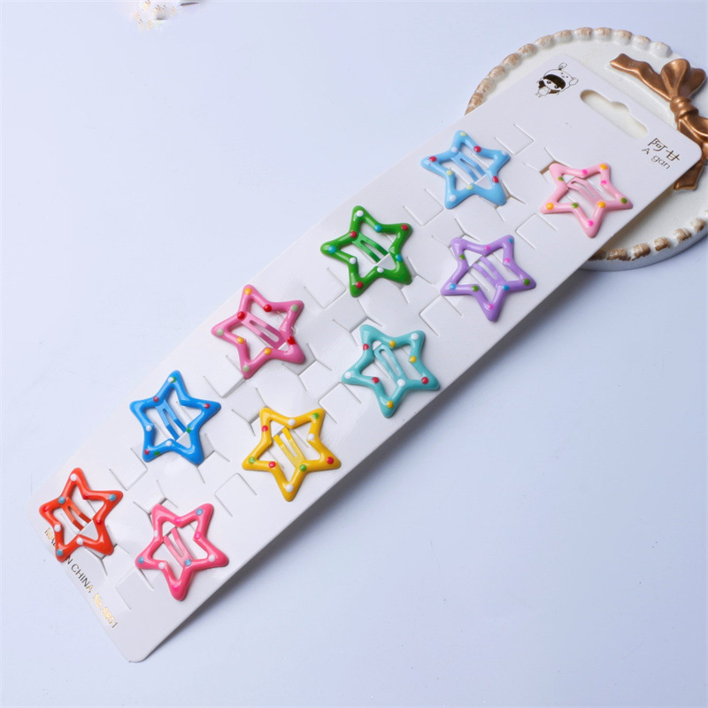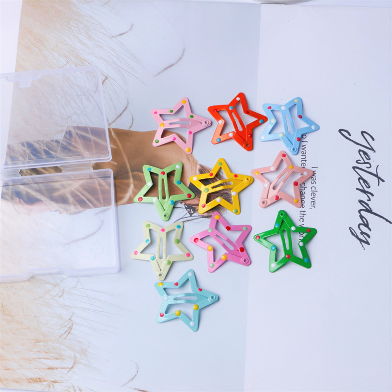 한국의 귀여운 캔디 컬러 드립 오일 오점 별 머리핀 소녀 BB 클립 달콤한 모든 매치 소녀 앞머리 헤어 액세서리