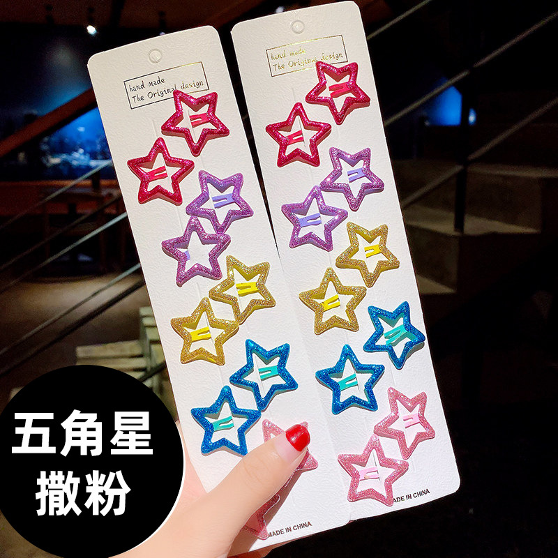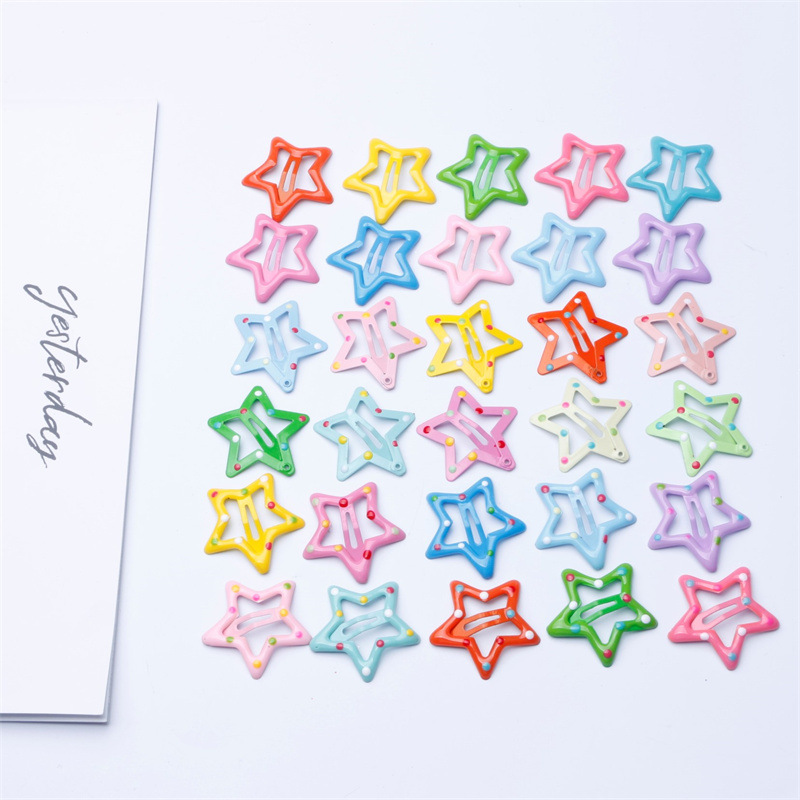 한국의 귀여운 캔디 컬러 드립 오일 오점 별 머리핀 소녀 BB 클립 달콤한 모든 매치 소녀 앞머리 헤어 액세서리스토어 가기