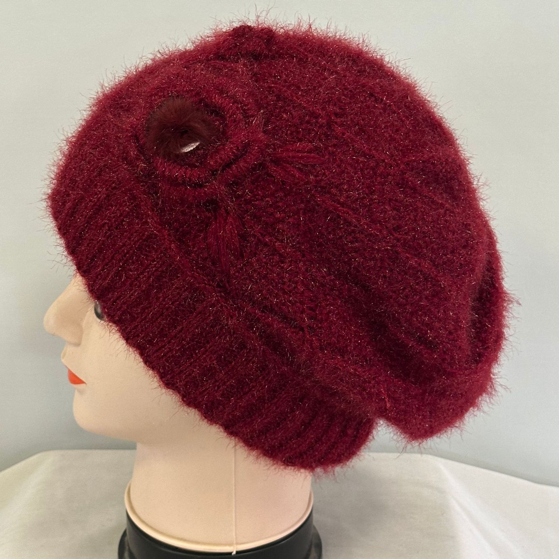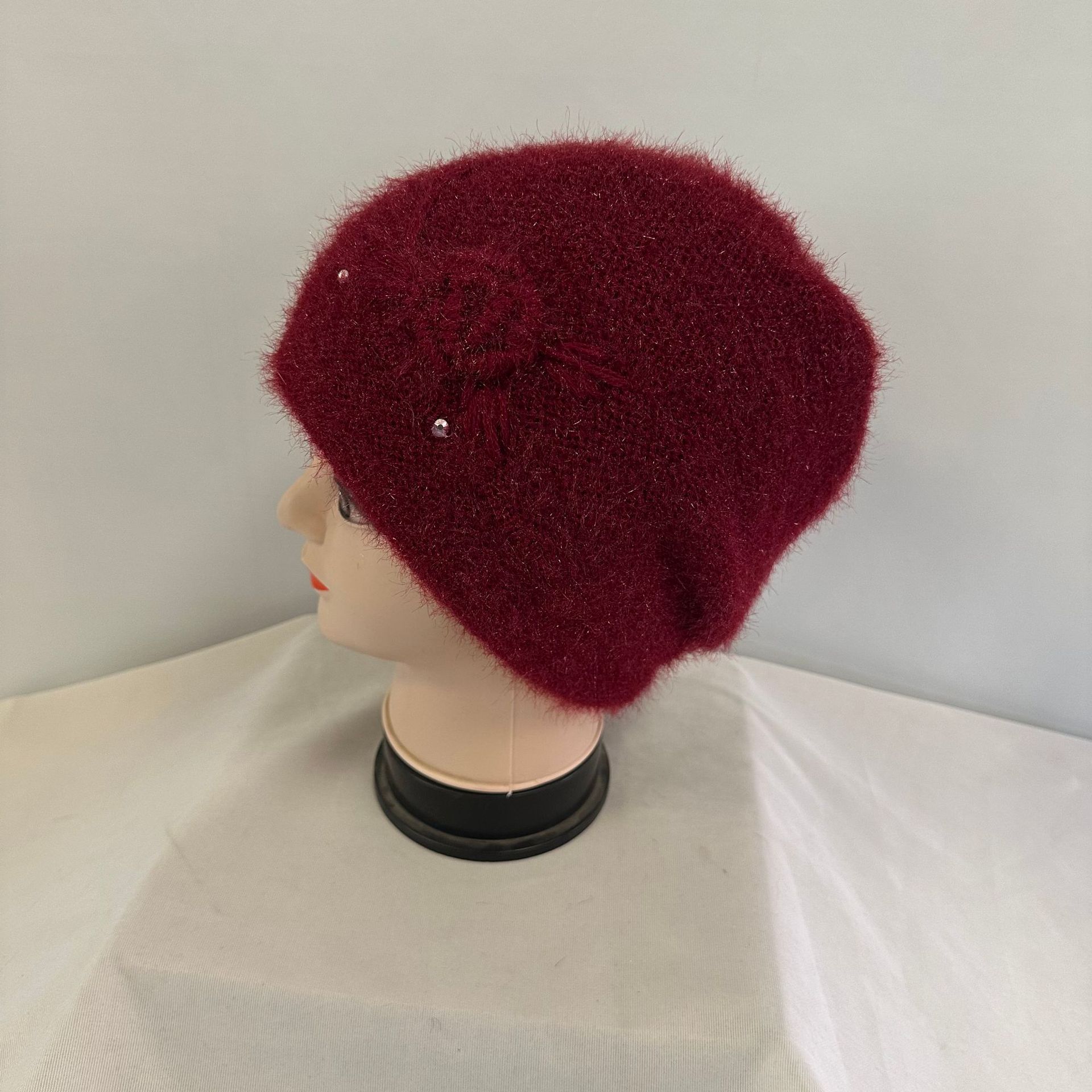 • 다이아몬드 플레이트 플라워 모자-버건디