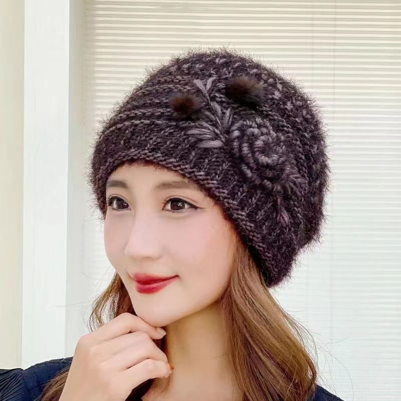 • 라이트 플레이트 플라워 모자 - 다크 커피