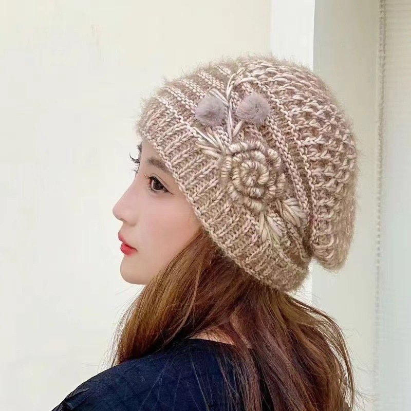 • 라이트 플레이트 플라워 모자 - 라이트 커피