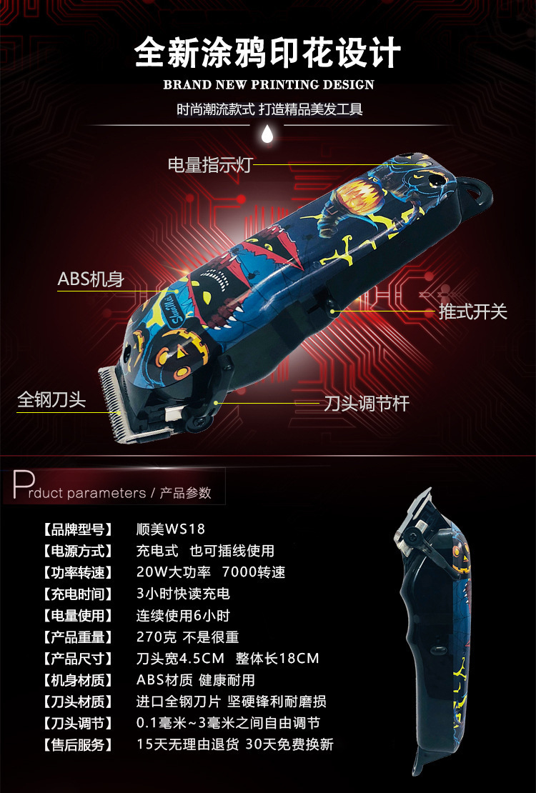 국경 간 면도기 머리 낙서 이발사 가위 전문 헤어 클리퍼 전기 이발기 전기 클리퍼