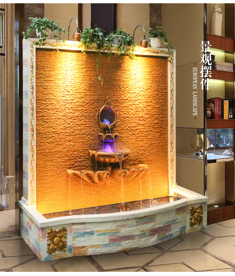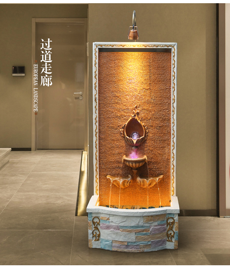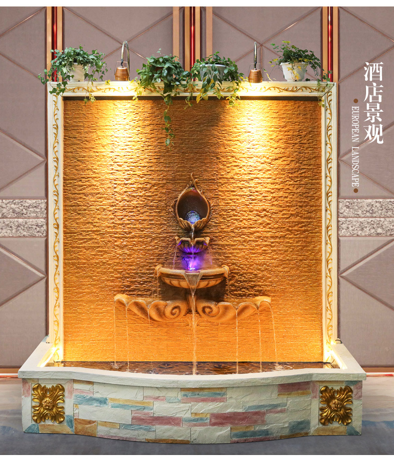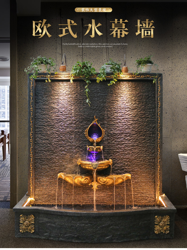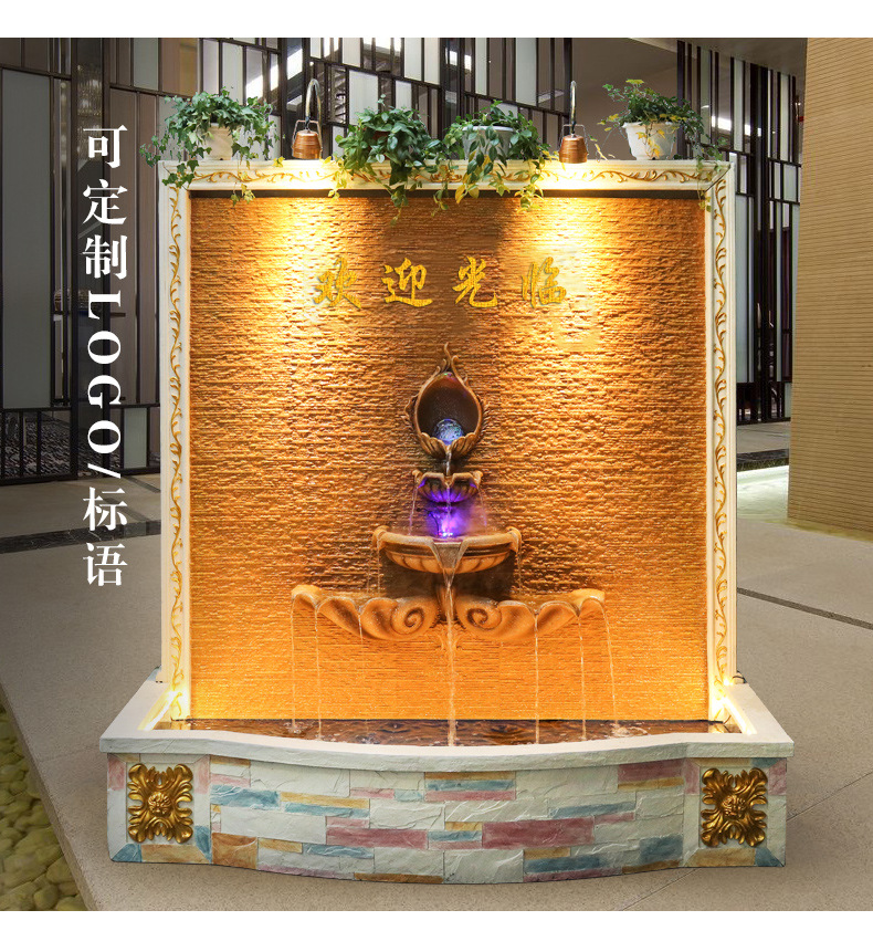 유럽식 대형 워터 커튼 월 rockery 워터 분수 장식 회사 프런트 데스크 호텔 로비 사용자 정의 가능 로고 슬로건스토어 가기