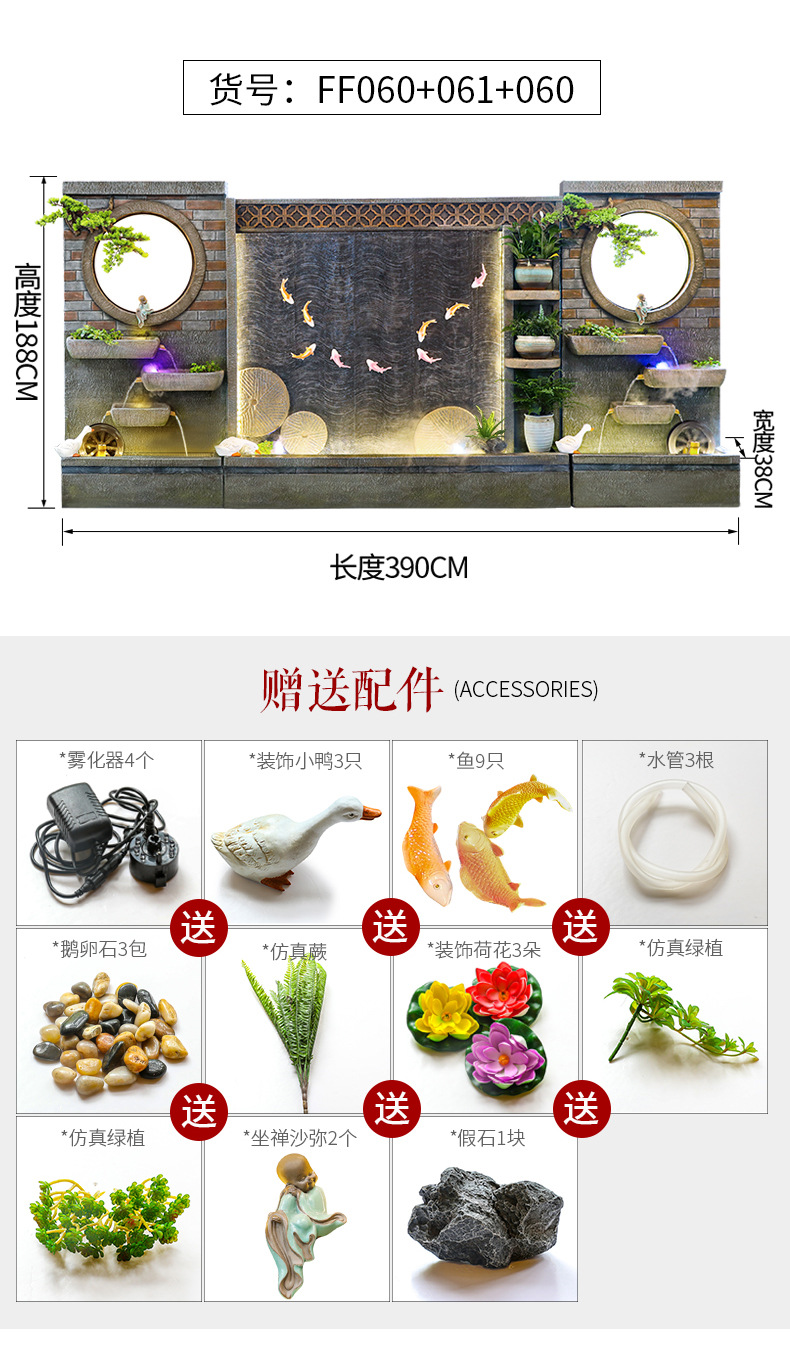 로커리 유수 물 특집 장식 베란다 사 호텔 워터 커튼 월 스크린 파티션 정원 안뜰 풍수 바퀴스토어 가기