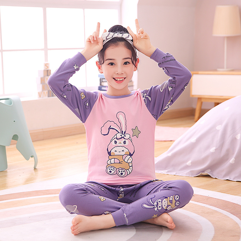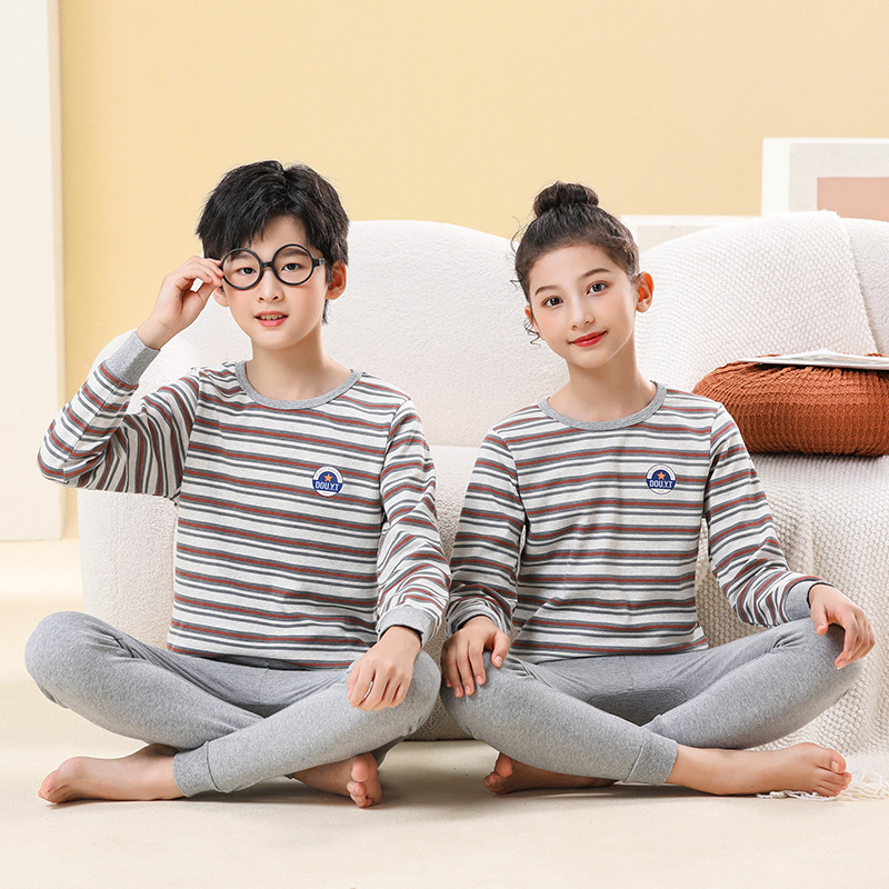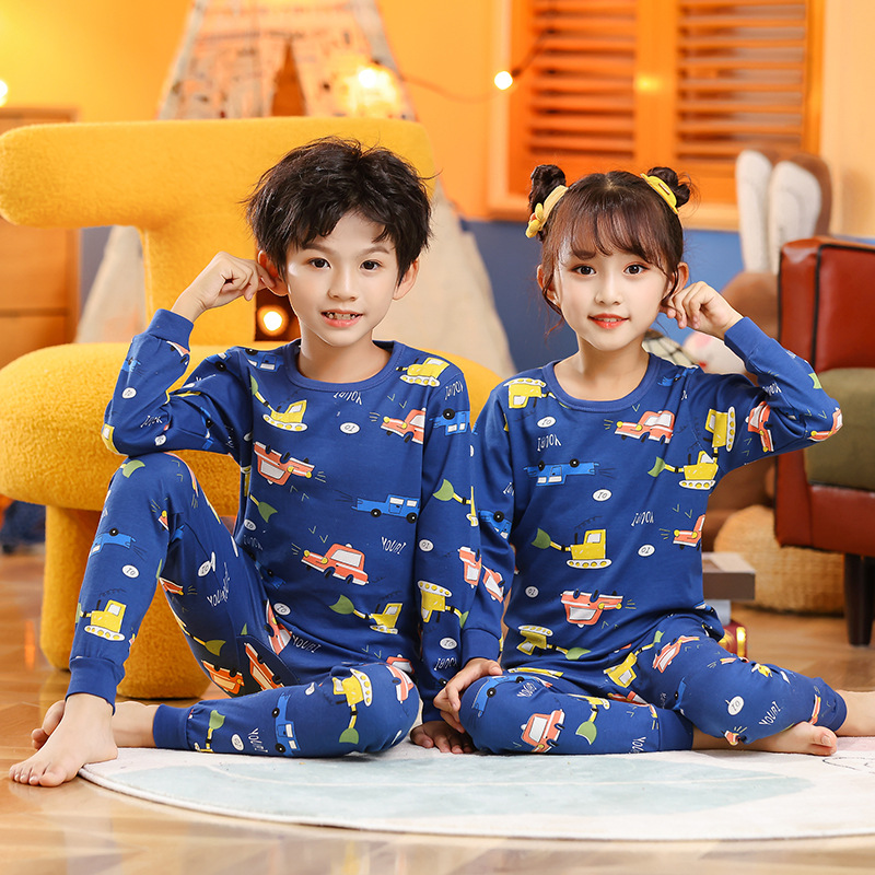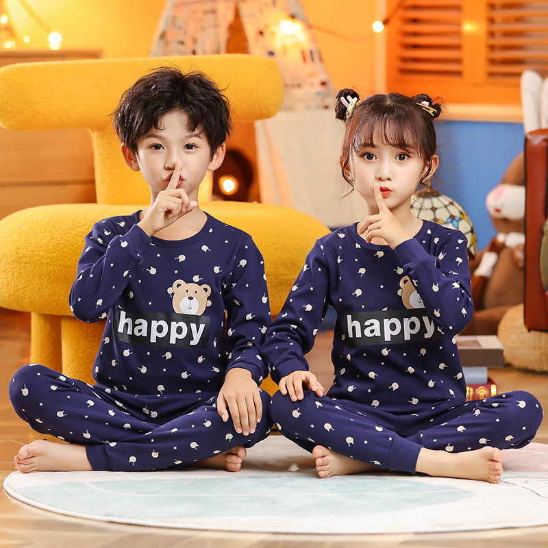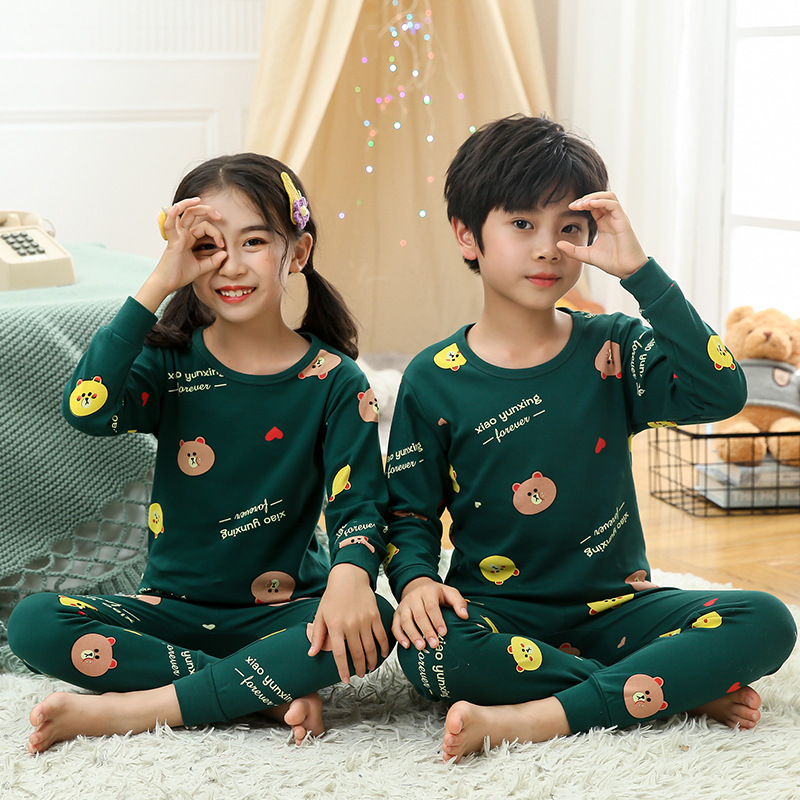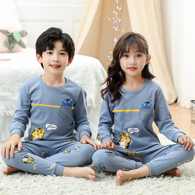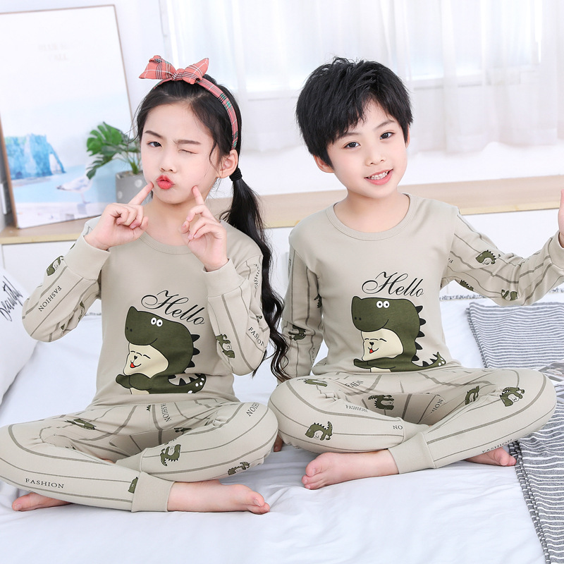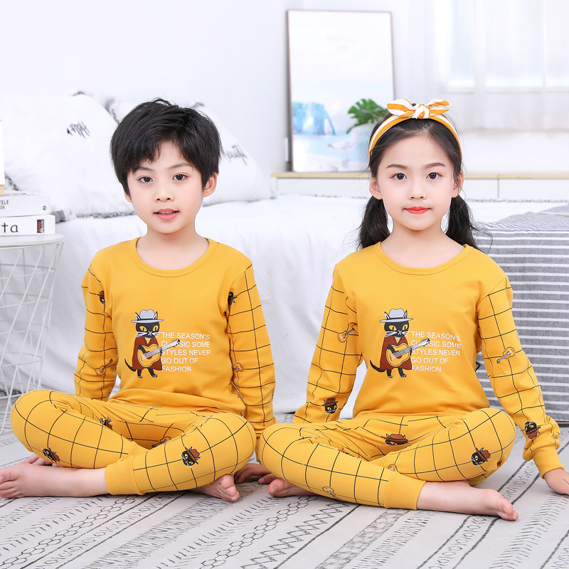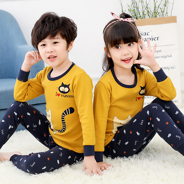 소년과 소녀를위한 새로운 어린이 열 속옷 멀티 컬러 만화 인쇄 코튼 가을과 겨울 투피스 잠옷