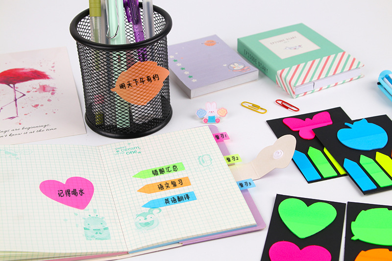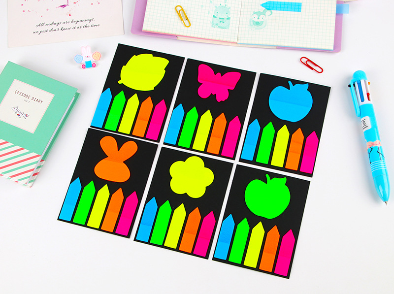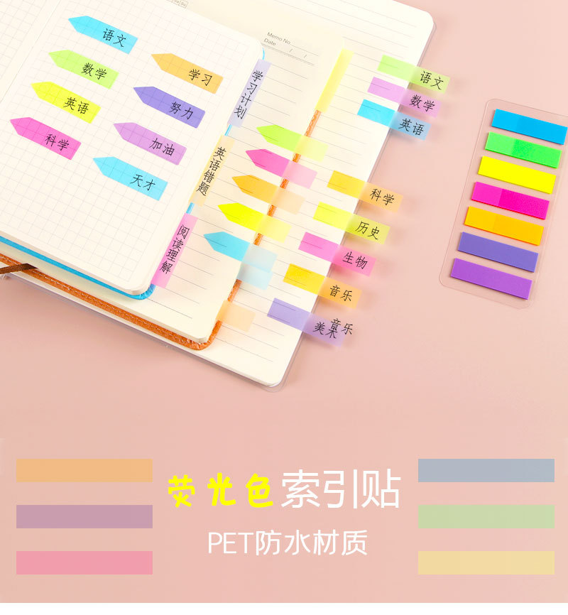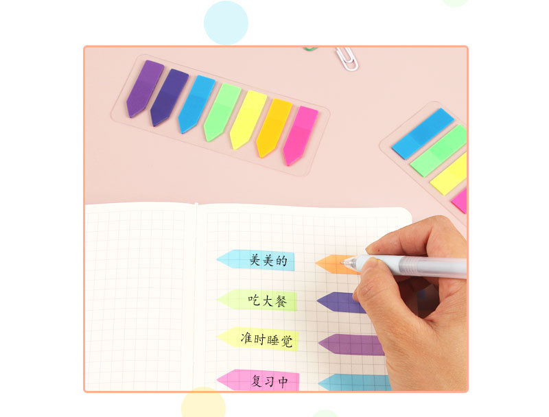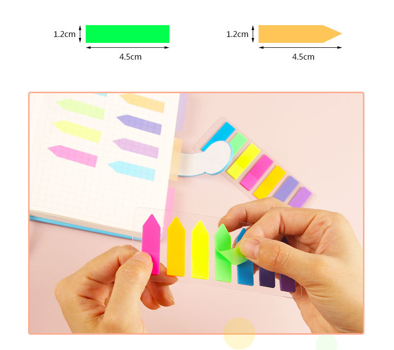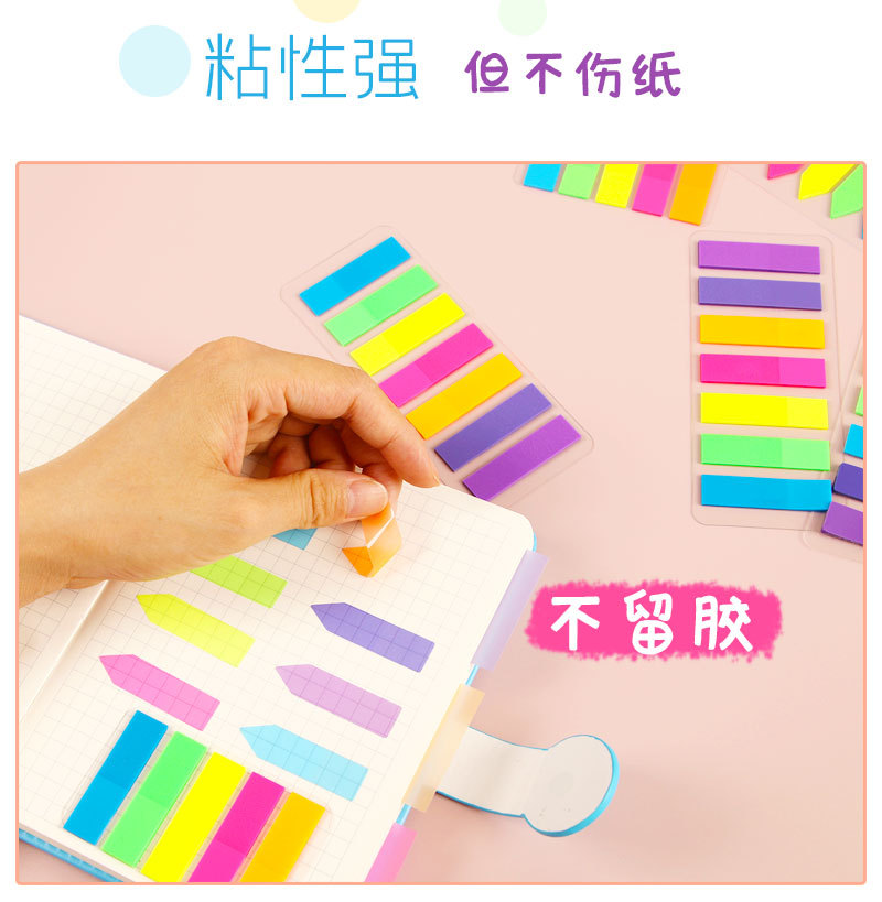 PET 투명 스티커 메모 형광 색상 스트립 색인 스티커 학생 자체 접착 방수 화살표 분류 라벨 스티커 도매스토어 가기