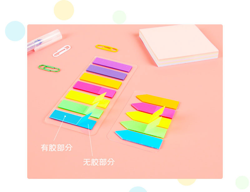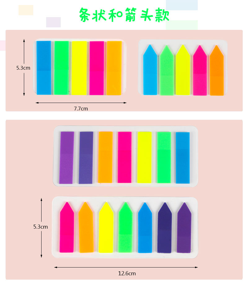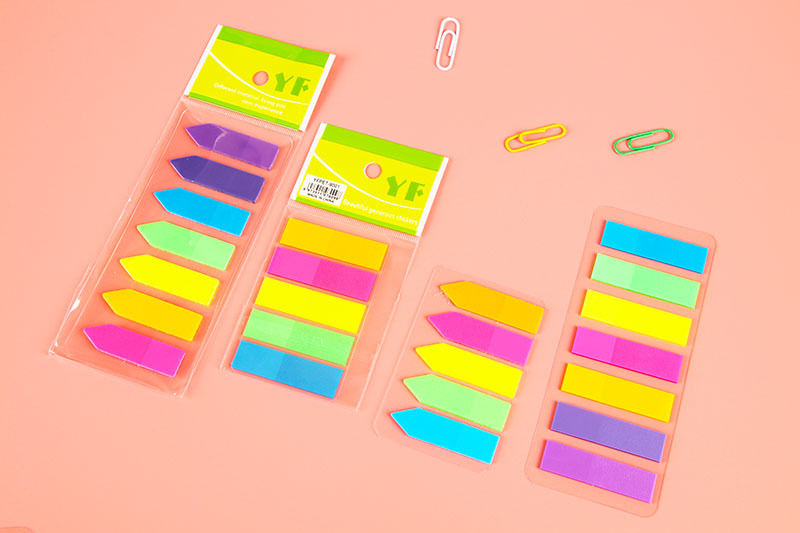 PET 투명 스티커 메모 형광 색상 스트립 색인 스티커 학생 자체 접착 방수 화살표 분류 라벨 스티커 도매