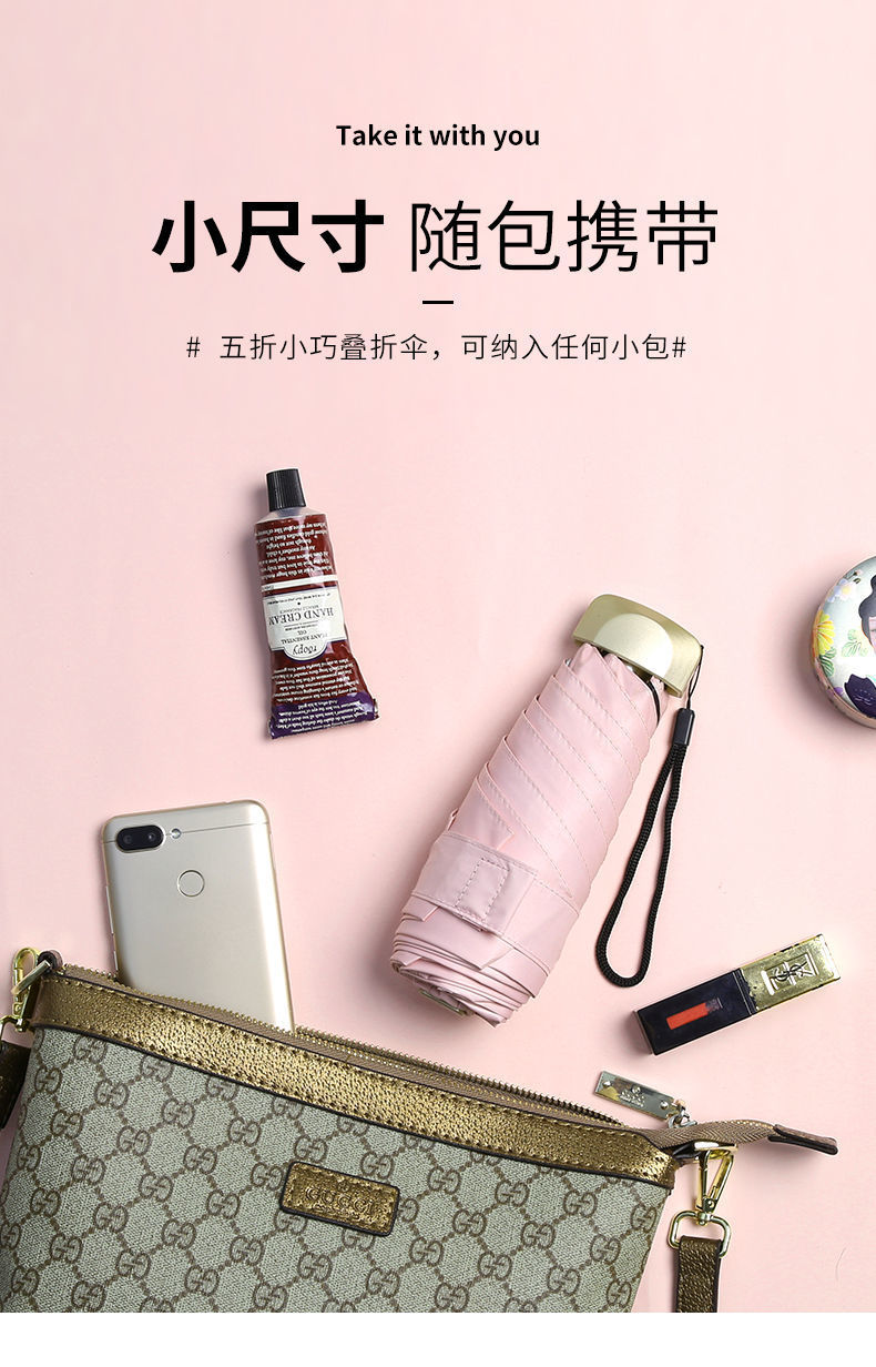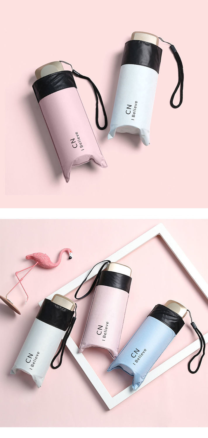 50% 접이식 태양 우산 접는 맑고 비 이중 목적 캡슐 미니 차양 및 태양 보호 여학생 귀여운 맑고 비 이중 목적 우산스토어 가기