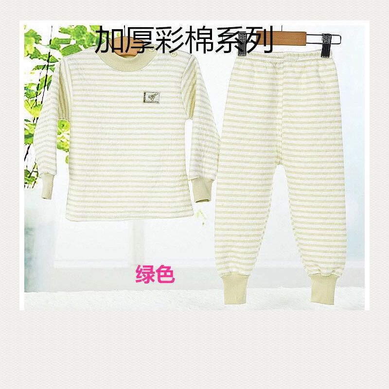 Jintan Jiaolong 브랜드 아동 속옷 세트, 가로 줄무늬 누비 천연 컬러 코튼, 피부 친화적인 가을 옷, 따뜻하고 통기성 좋음