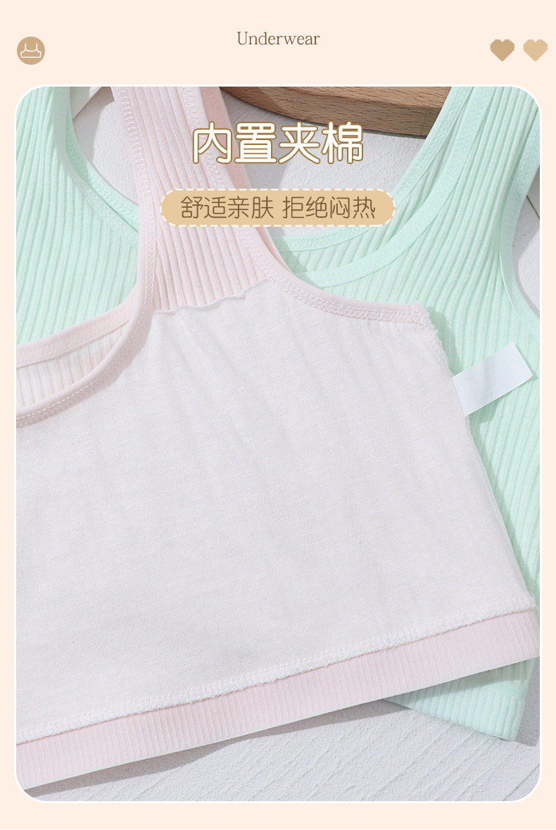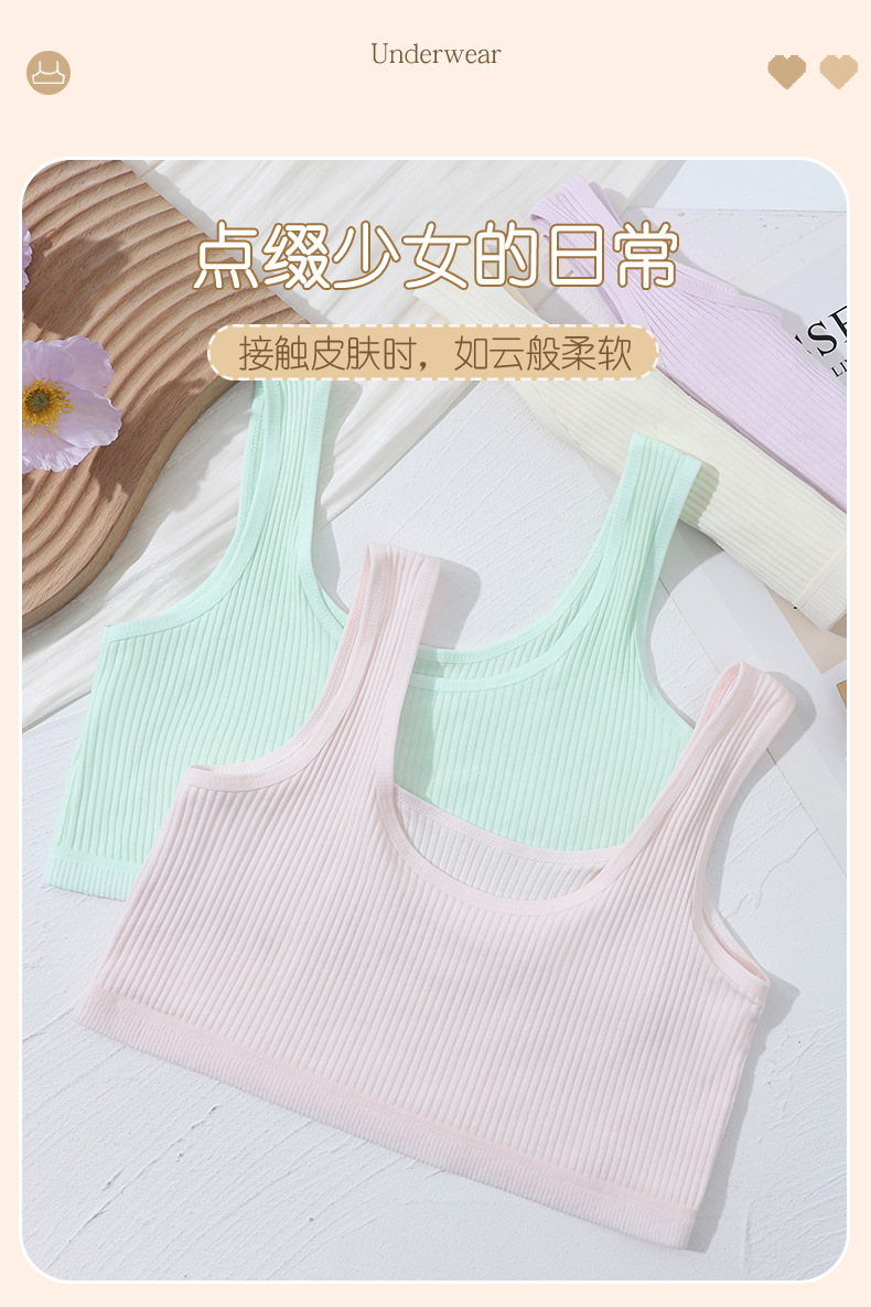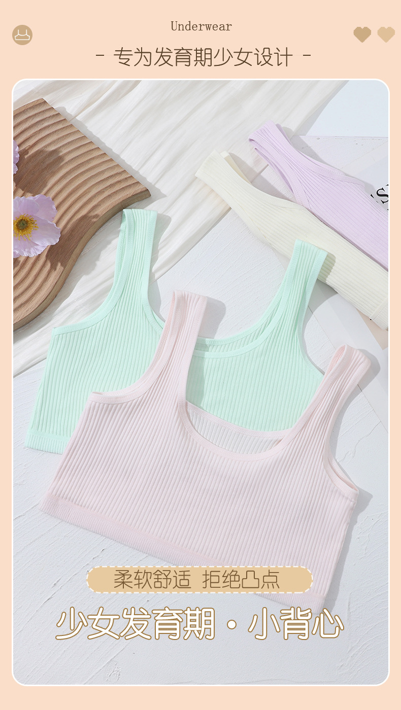 여아 속옷 발달 여아 단색 가슴 포장 작은 조끼 청소년 어린이를위한 학생 순면 여아 브래지어
