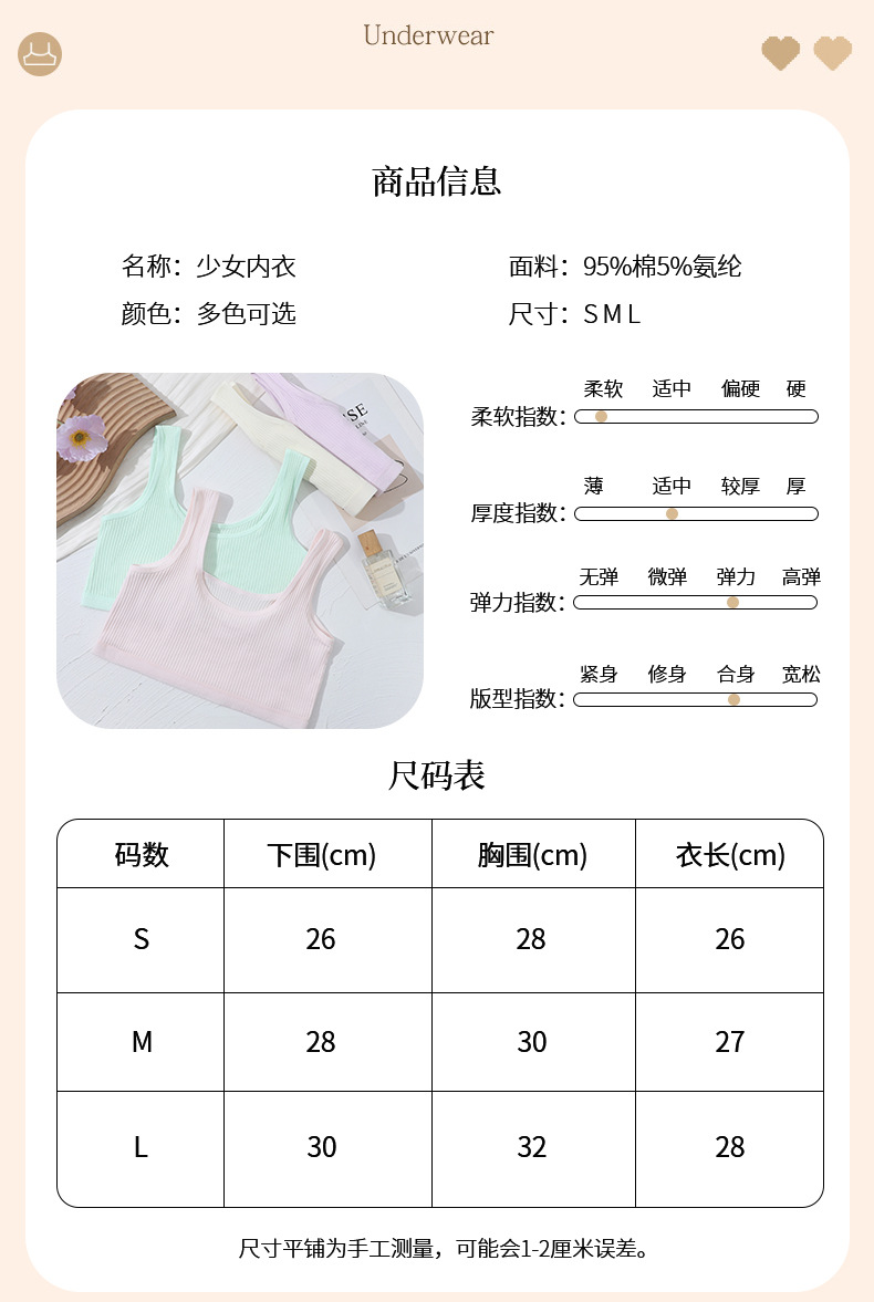 여아 속옷 발달 여아 단색 가슴 포장 작은 조끼 청소년 어린이를위한 학생 순면 여아 브래지어스토어 가기