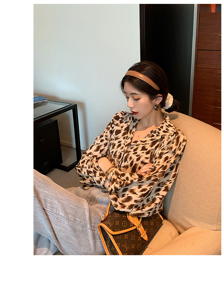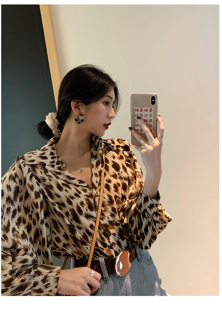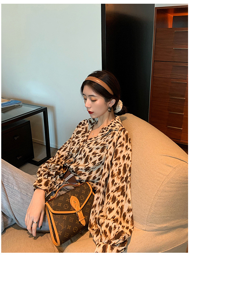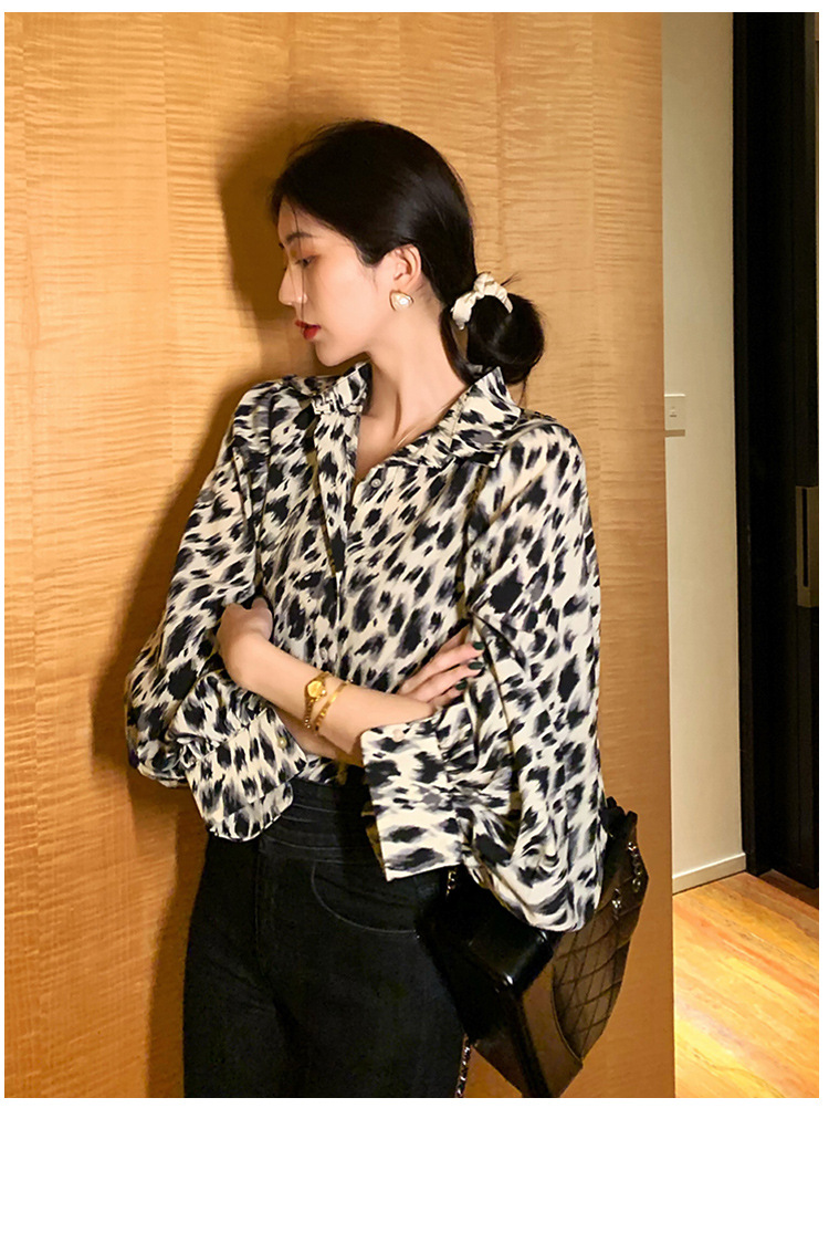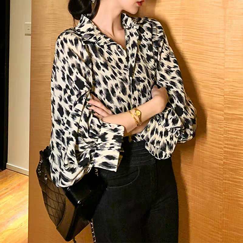 YUQI 레오파드 프린트 쉬폰 셔츠 여성 복고풍 홍콩 스타일 봄 2025 새로운 패션 랜턴 슬리브 루즈 프린트 셔츠스토어 가기