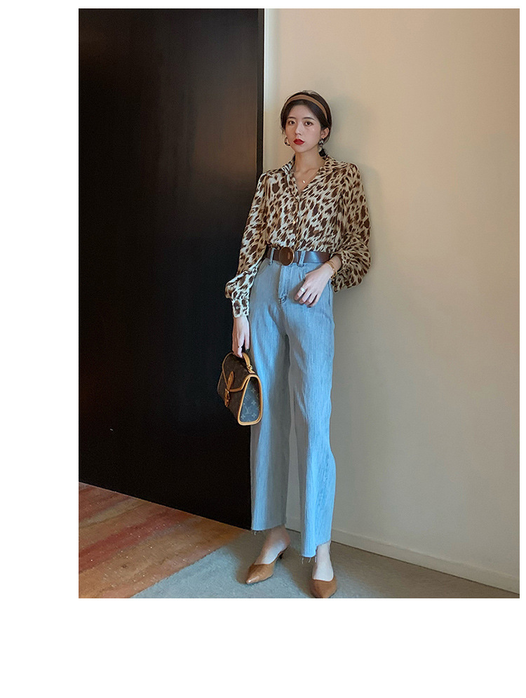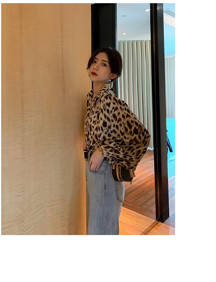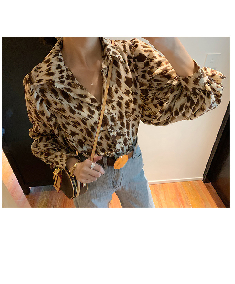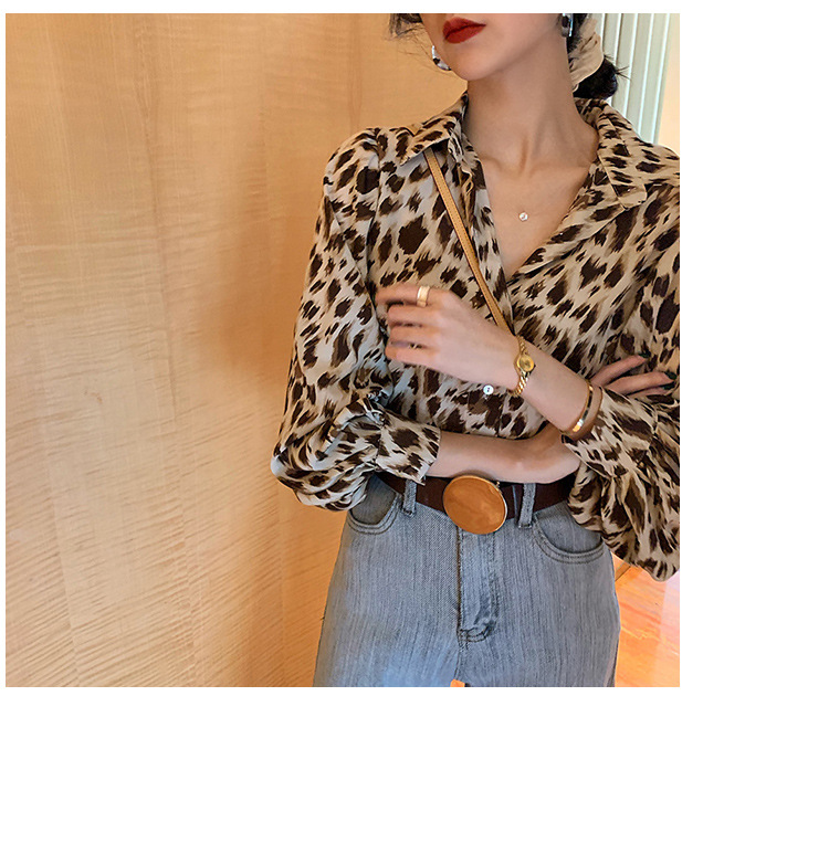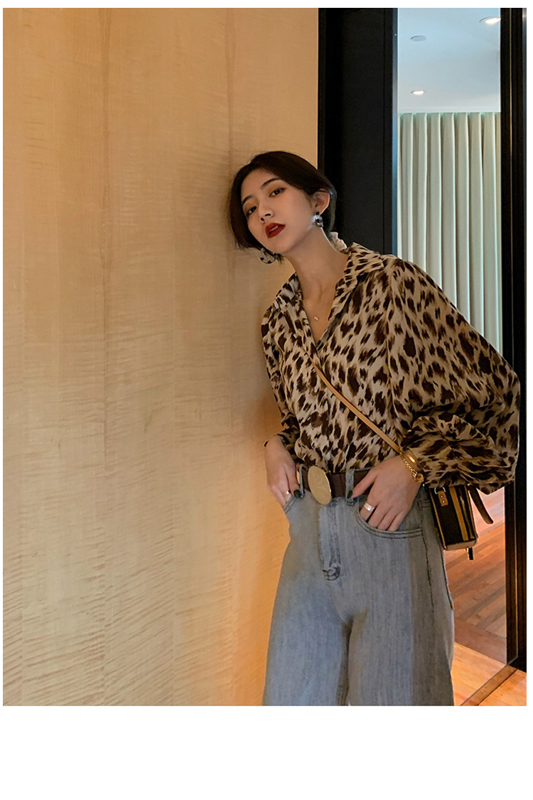 YUQI 레오파드 프린트 쉬폰 셔츠 여성 복고풍 홍콩 스타일 봄 2025 새로운 패션 랜턴 슬리브 루즈 프린트 셔츠스토어 가기