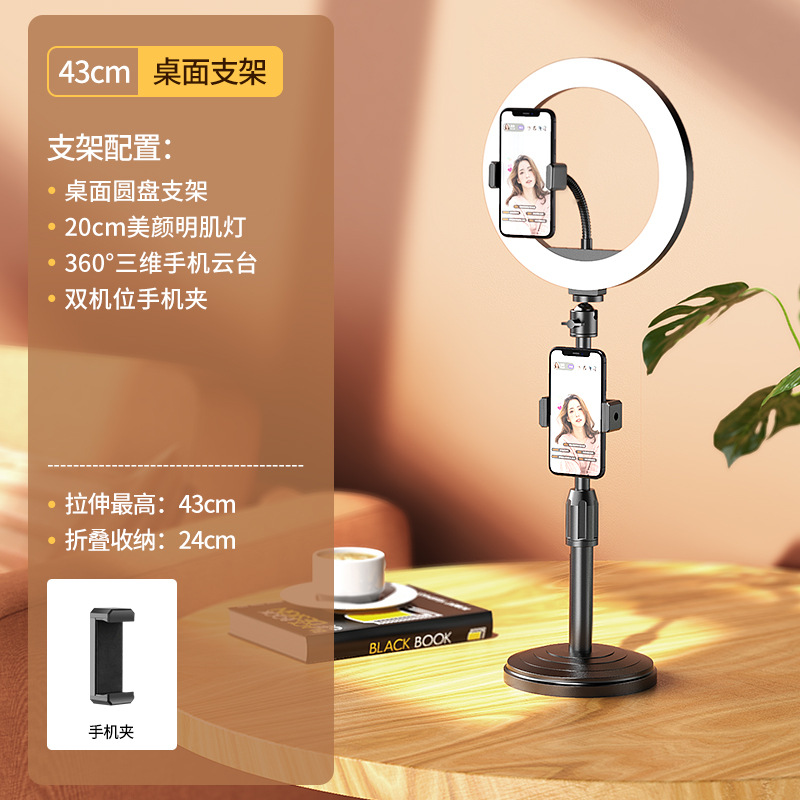 • 데스크탑 듀얼 포지션 + 20cm 뷰티 램프 + 셀카 [가중 브래킷]