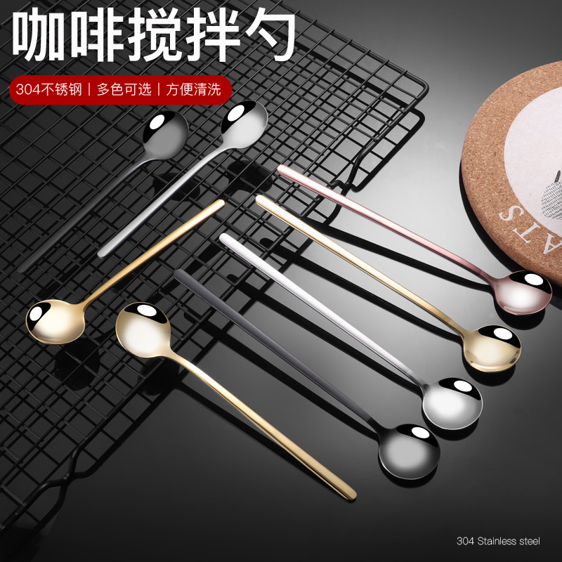 크로스 보더 304 스테인레스 스틸 커피 스푼 믹싱 스푼 티타늄 골드 롱 핸들 스푼 꿀 디저트 손 선물 스푼 작은 원형 스푼스토어 가기