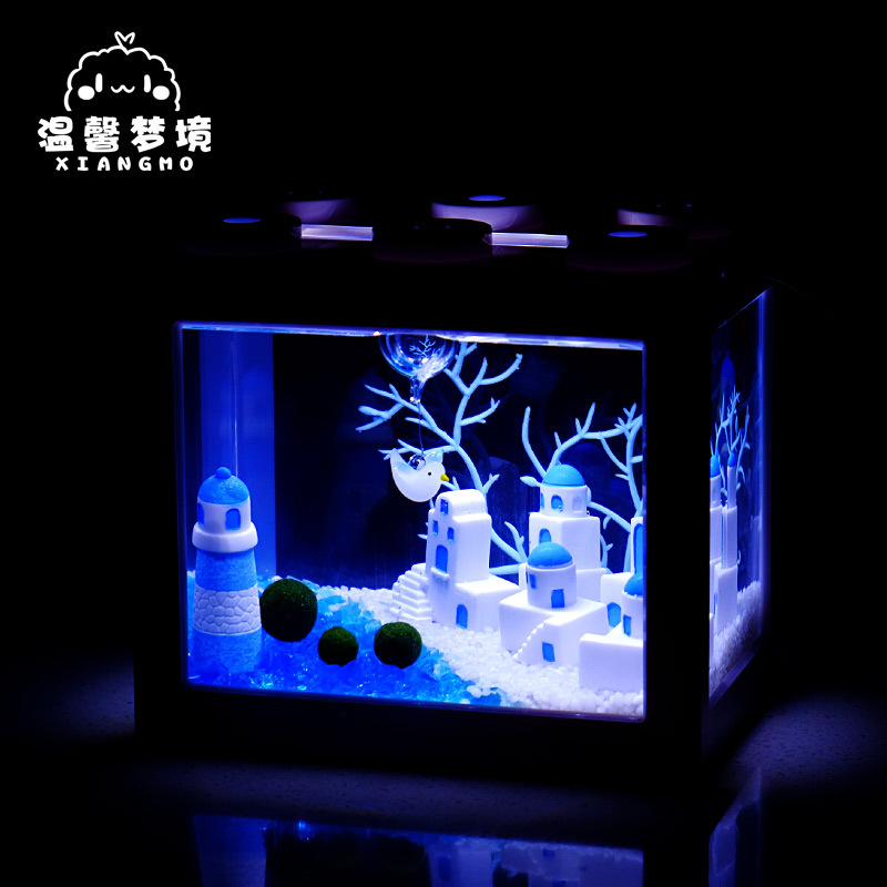 멋진 오두막 해초 공 마이크로 풍경 생태 탱크 어항 데스크탑 미니 수경 식물 작은 화분에 심은 창조적 인 선물