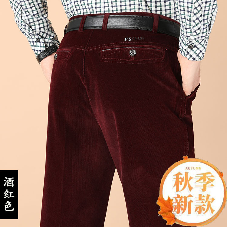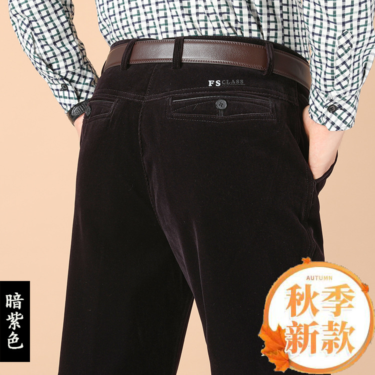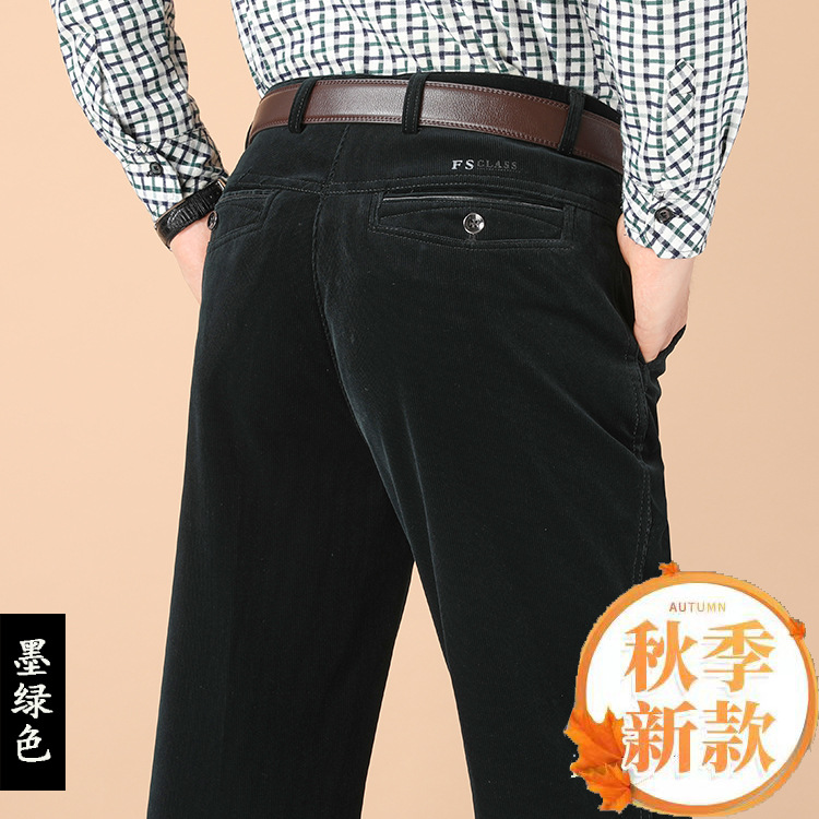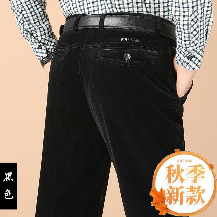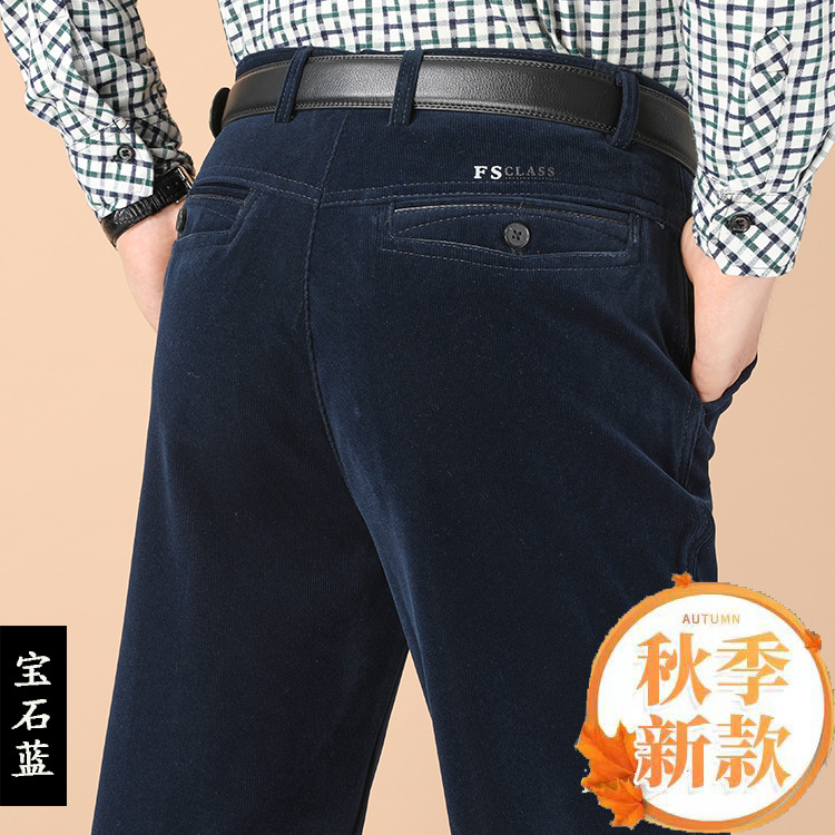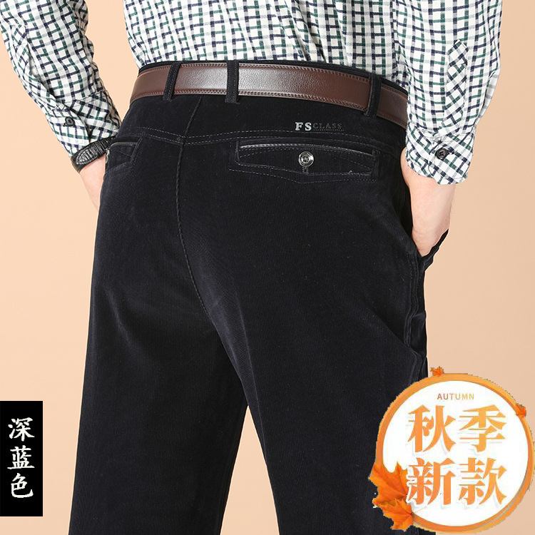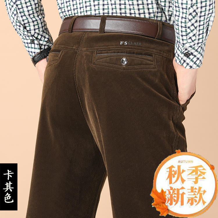 가을 겨울 두꺼운 중년 아빠용 코듀로이 바지 남성용 스트레이트 하이웨이스트 루즈핏 캐주얼 바지 50세 이상 대형 작업복 바지스토어 가기