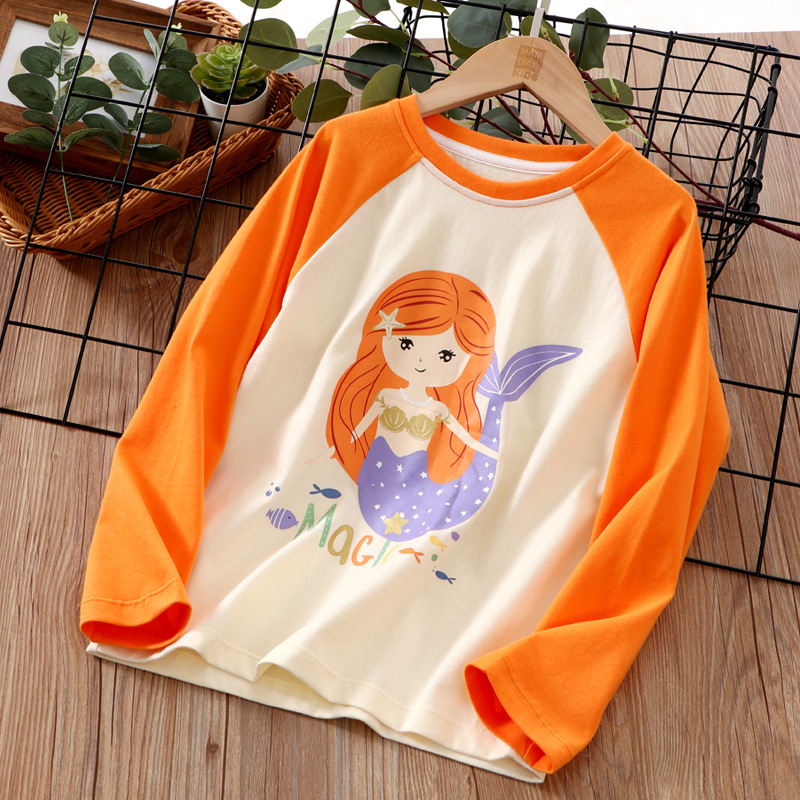 KIDS 여아 하의 셔츠 어린이 둥근 목면 긴 소매 티셔츠 아기 코트 가을과 겨울 어린이 가을 의류 제조 업체