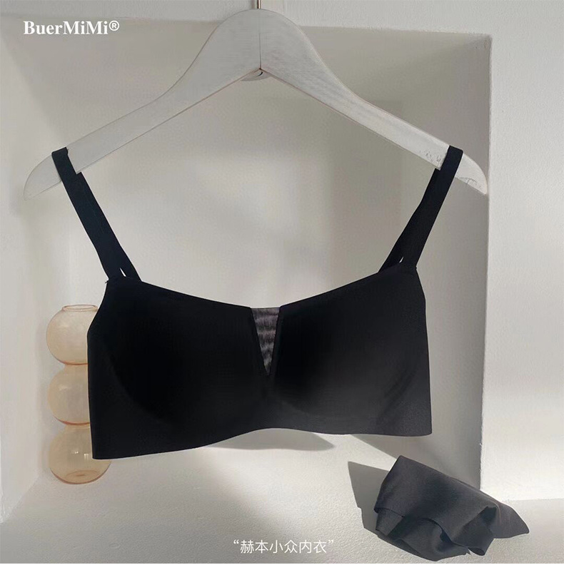 햅번 틈새 속옷 프랑스 스타일 레트로 스퀘어 칼라 아이스 실크 원활한 푸시 업 작은 가슴 여성을위한 림이없는 섹시한 초박형 브래지어