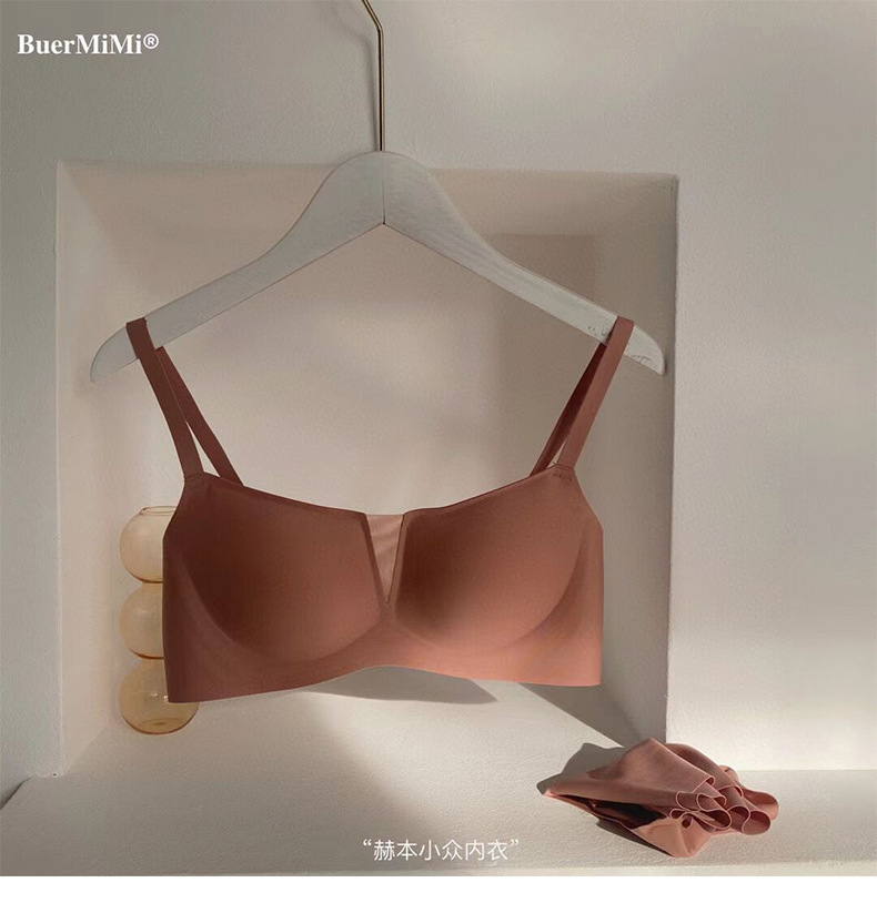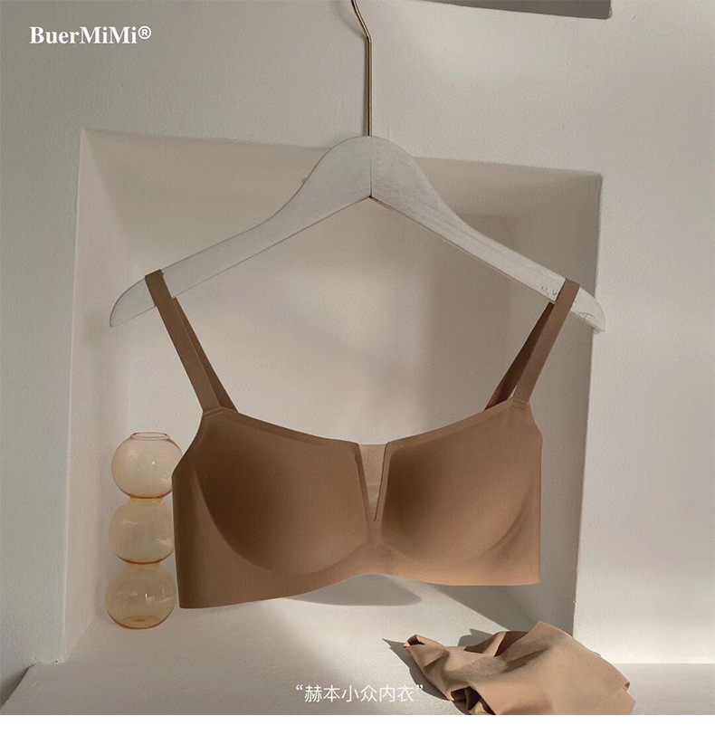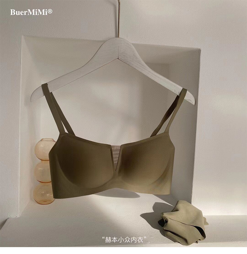 햅번 틈새 속옷 프랑스 스타일 레트로 스퀘어 칼라 아이스 실크 원활한 푸시 업 작은 가슴 여성을위한 림이없는 섹시한 초박형 브래지어스토어 가기