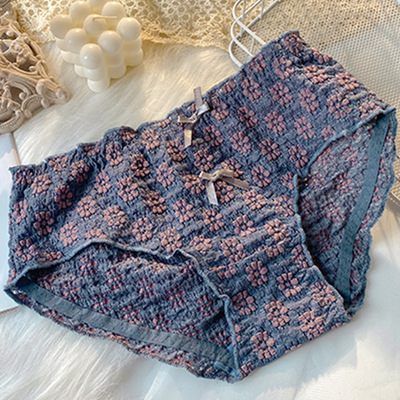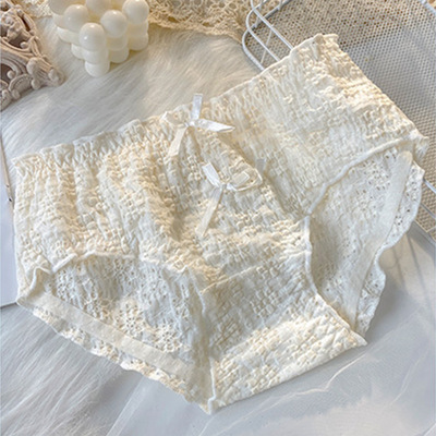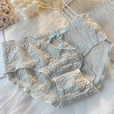 여름용 무봉제 레이스 배꽃 무늬 중간 허리 팬티 소녀용 순면 통기성 삼각 팬티 귀여운 소녀 스타일스토어 가기