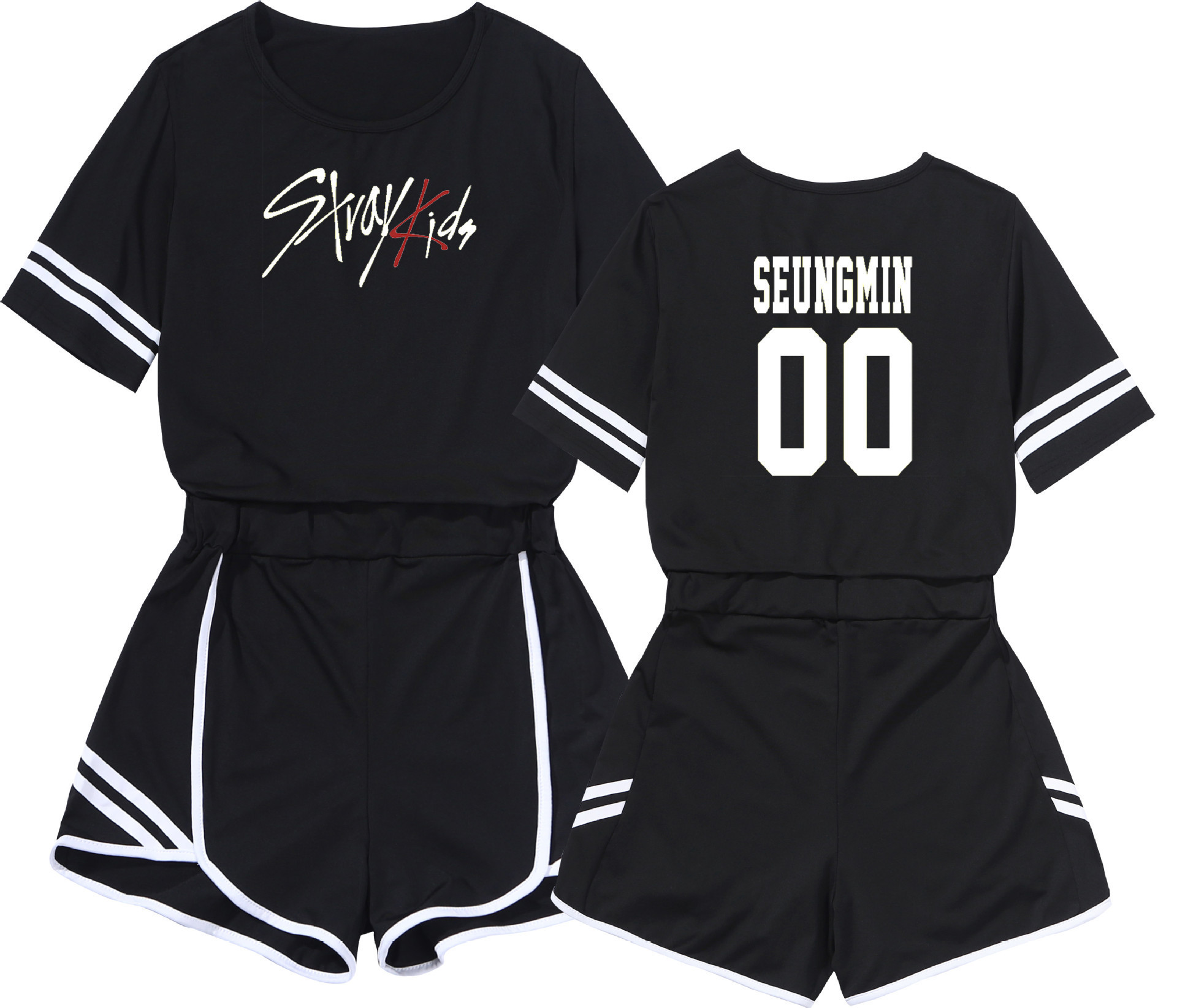 크로스보더 뉴 스트레이키즈 티셔츠 투피스 스포츠 배꼽 세트 여성 캐주얼 슬림핏 스커트스토어 가기