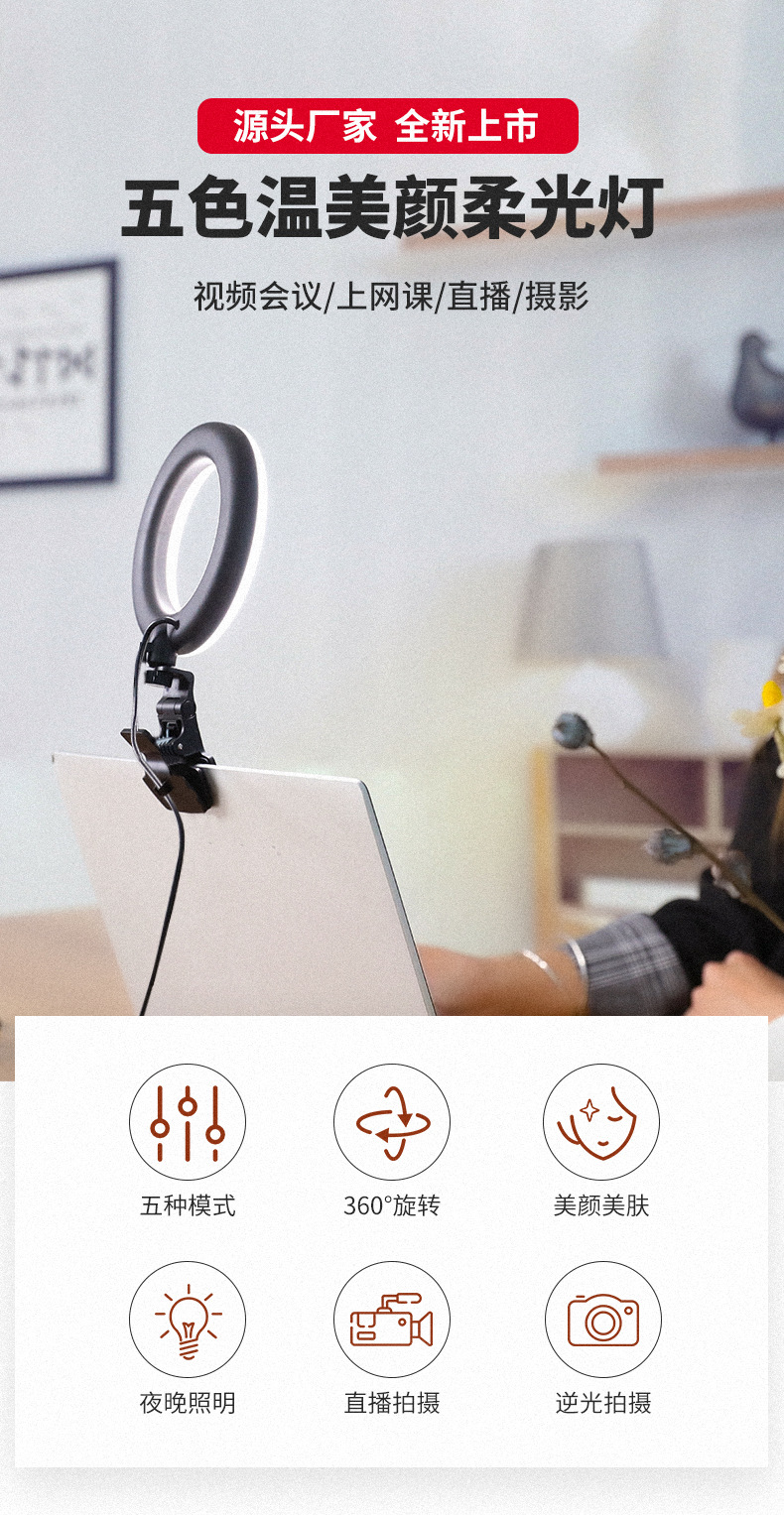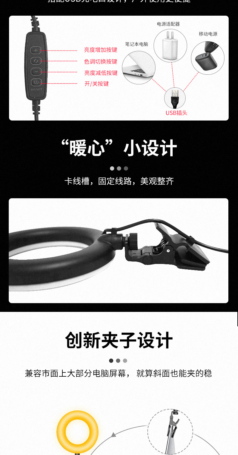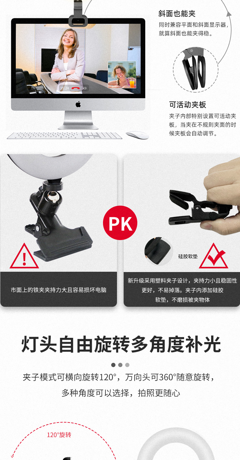 인기 상품: 휴대폰/컴퓨터 화상회의용 스크린 클립 라이트, 테이블 램프, 보조광, 소프트 라이트, 도매, 휴대용스토어 가기