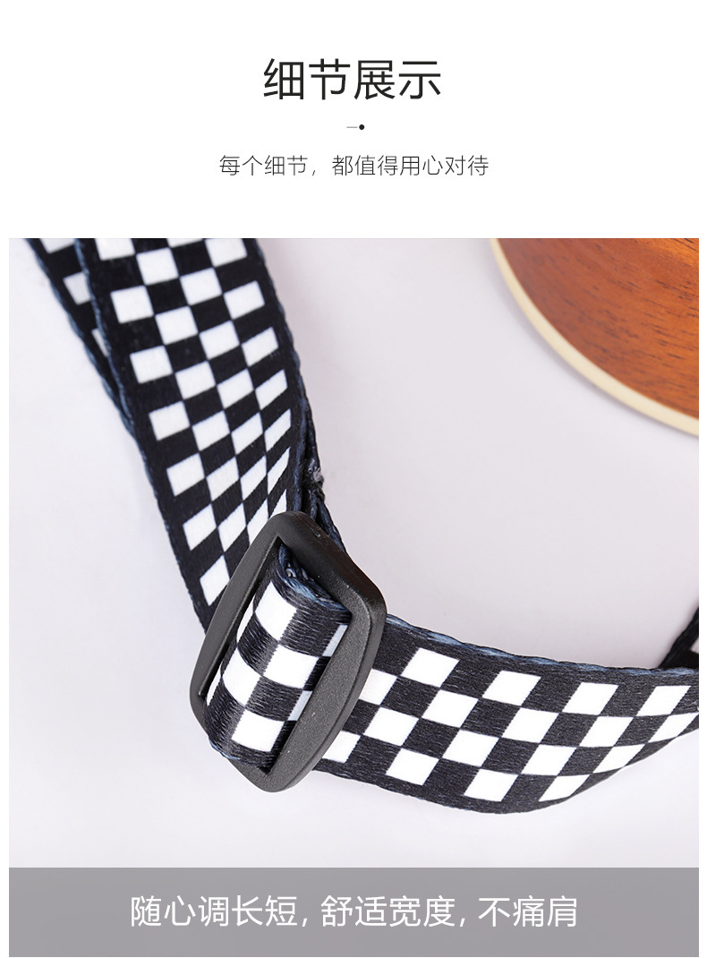 • 우쿨렐레 [매달린 목] 흑백 격자 스트랩