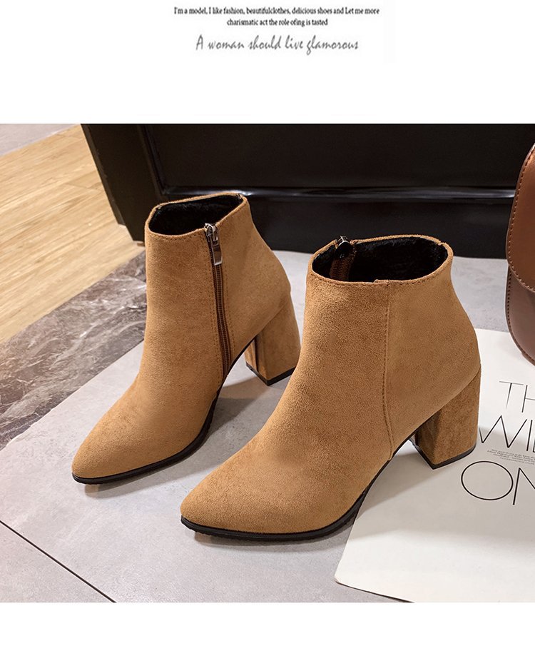 어린이를위한 하이힐 부츠 2023 가을 새 사이드 지퍼 스웨이드 뾰족한 한국 여성 부츠 패션 두꺼운 뒤꿈치