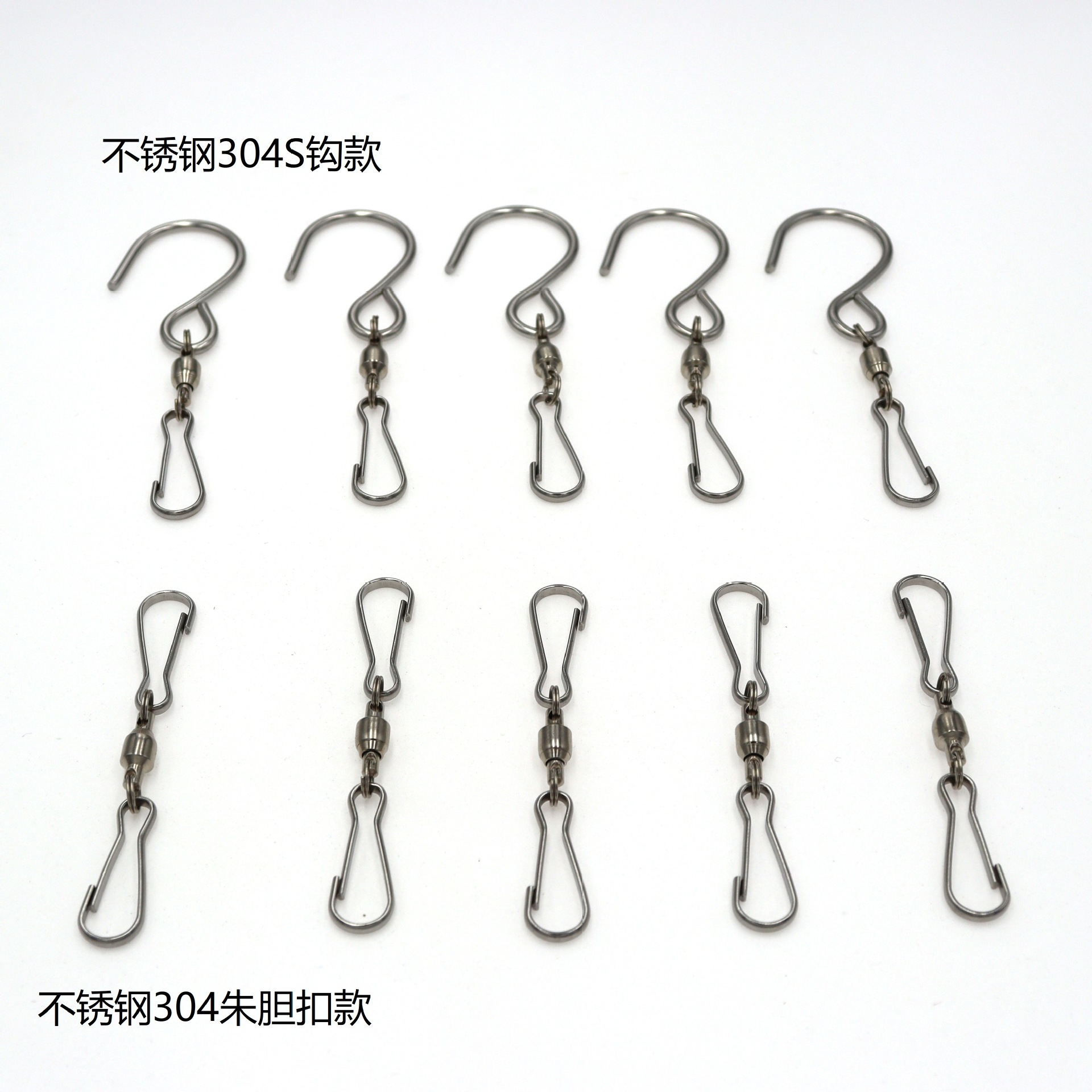 产品材质:S钩和朱胆扣是不锈钢材质,中间部分的转环是铜材质