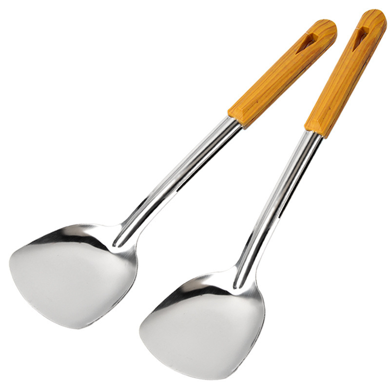 모조 나무 손잡이 플라스틱 손잡이 가정용 스테인레스 스틸 냄비 삽 간단한 팬 삽 주방용품 용품 볶음 삽 요리 냄비 삽