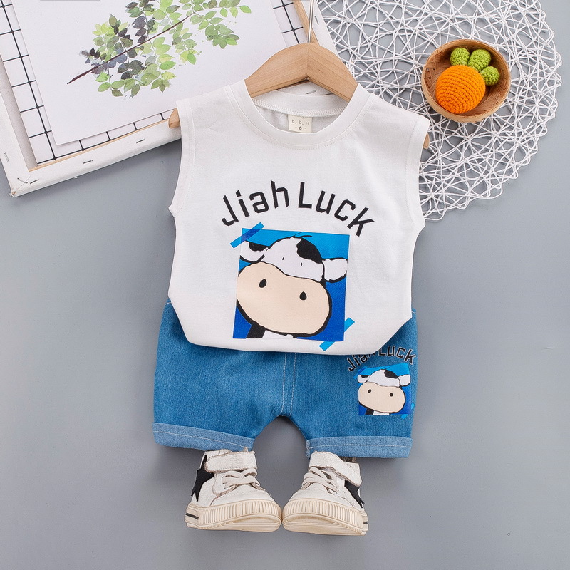 2021 새로운 소년 여름 원피스 서양 스타일 소년 아기 조끼 데님 반바지 1-3 세 아기 어린이 착용 여름 세트