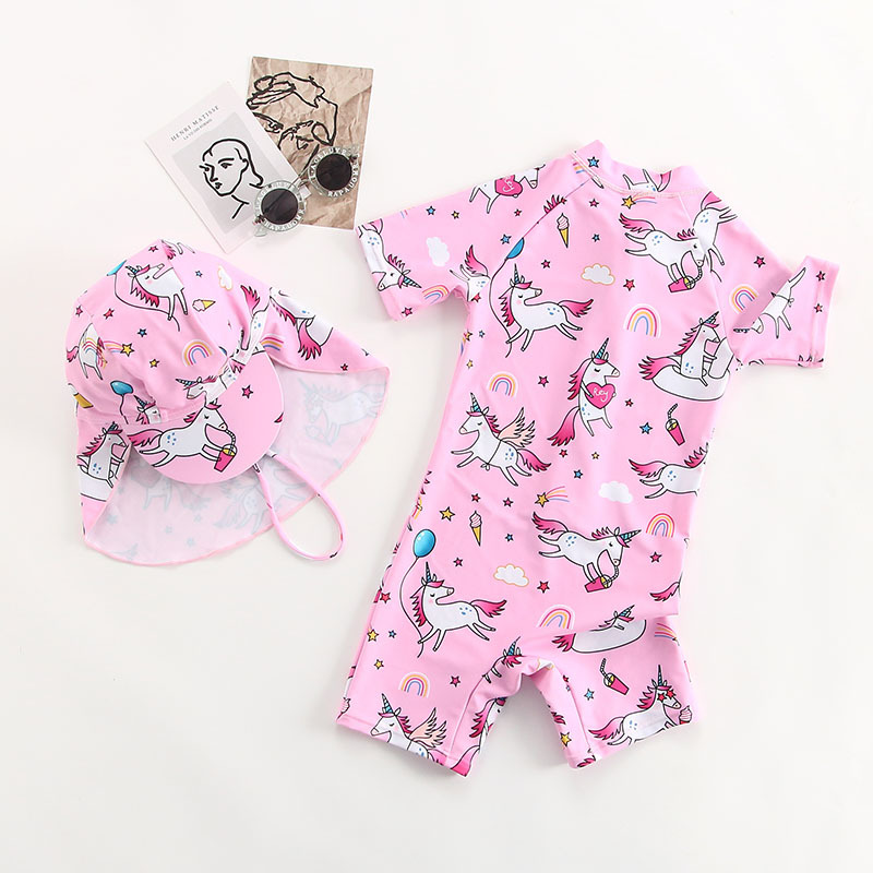 해외 무역 크로스 국경 귀여운 소녀 아기 어린이 수영복 어린이 아기 원피스 따뜻한 속건 서핑 수영 세트스토어 가기