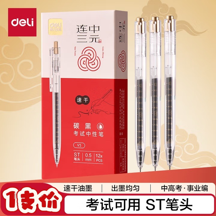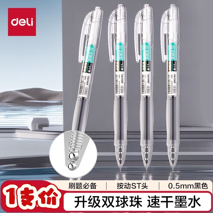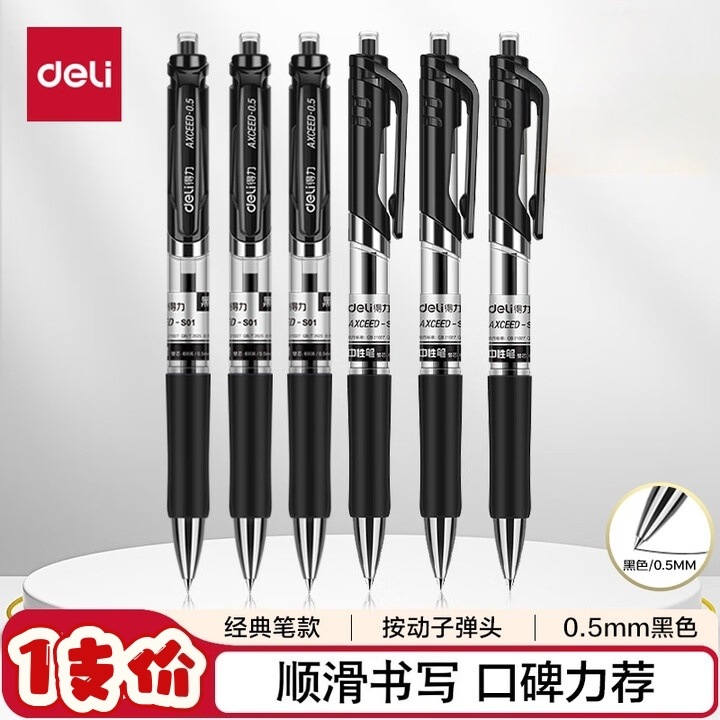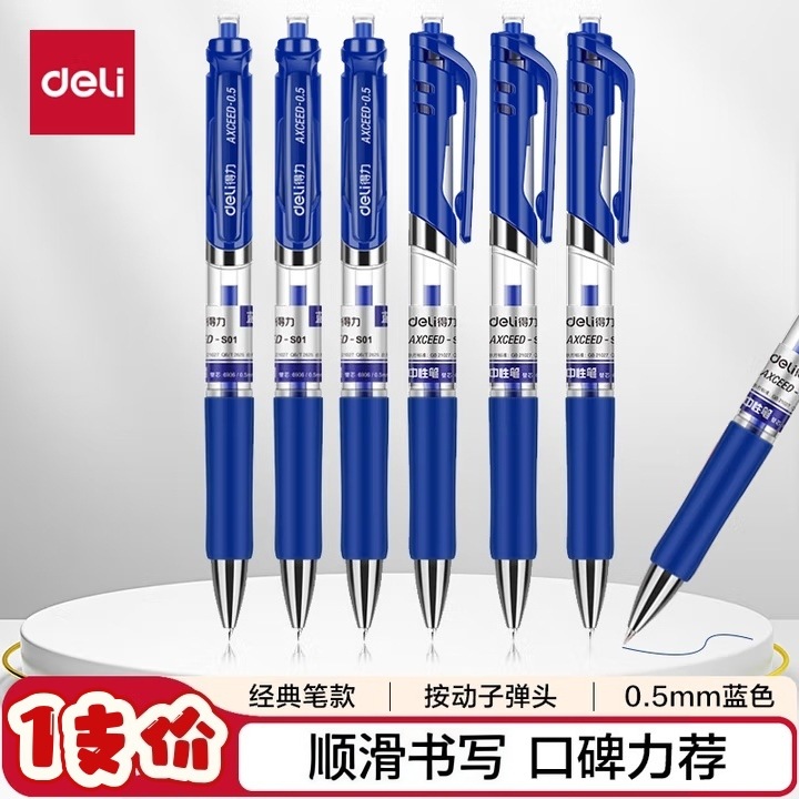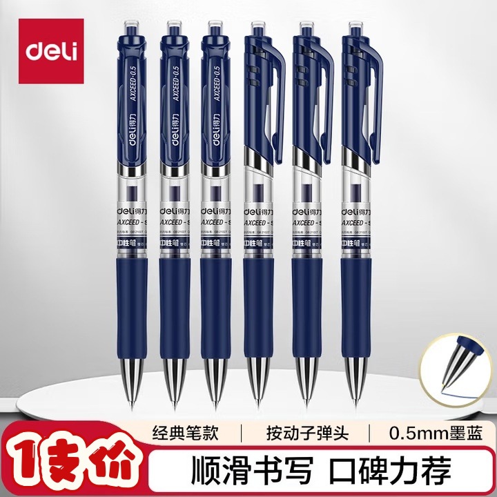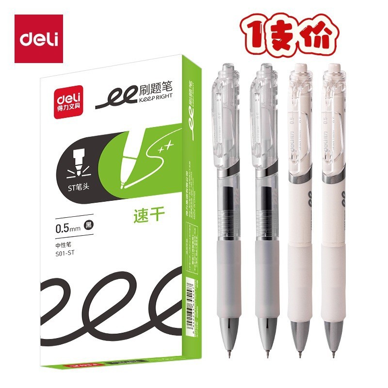 델리 프레스형 젤 펜 S01 매끄럽고 빠르게 건조되는 학생용 수성펜 프레스형 볼펜 사무용 검정색 서명펜