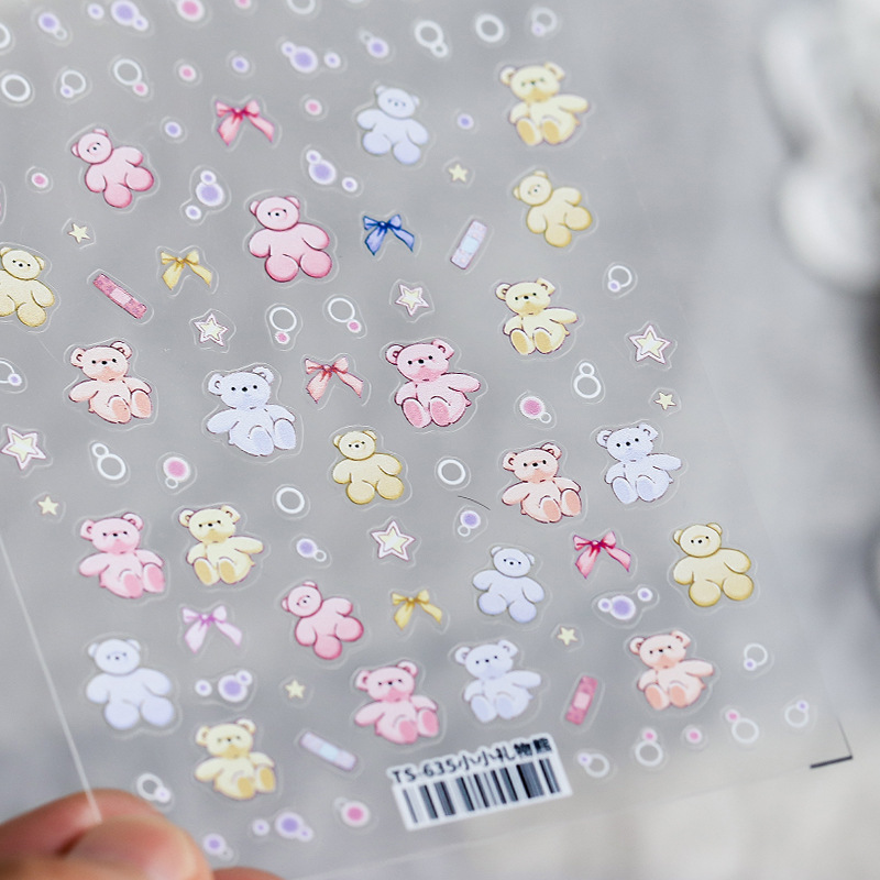 철 신기술 5D 3 차원 얇은 터프 네일 스티커 접착 네일 스티커 네일 쥬얼리 Mengmeng 선물 곰 TS633