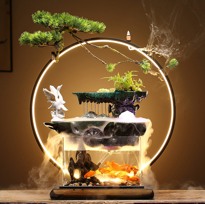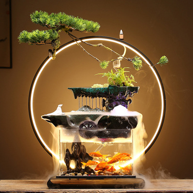 창조적 인 중국 스타일 분수 장식 젠 라이트 서클 작은 어항 사무실 거실 행운의 물 커튼 동굴 하늘스토어 가기