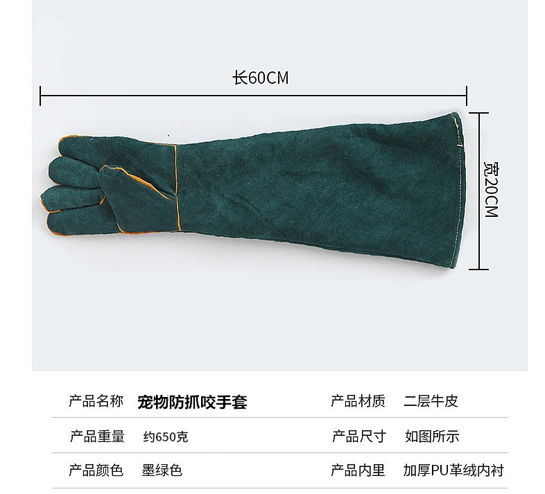 애완 동물 스크래치 방지 장갑 애완 동물 개 훈련 개 물린 두꺼운 긴 소가죽 잡는 뱀과 악어 거북이 고양이 목욕 보호