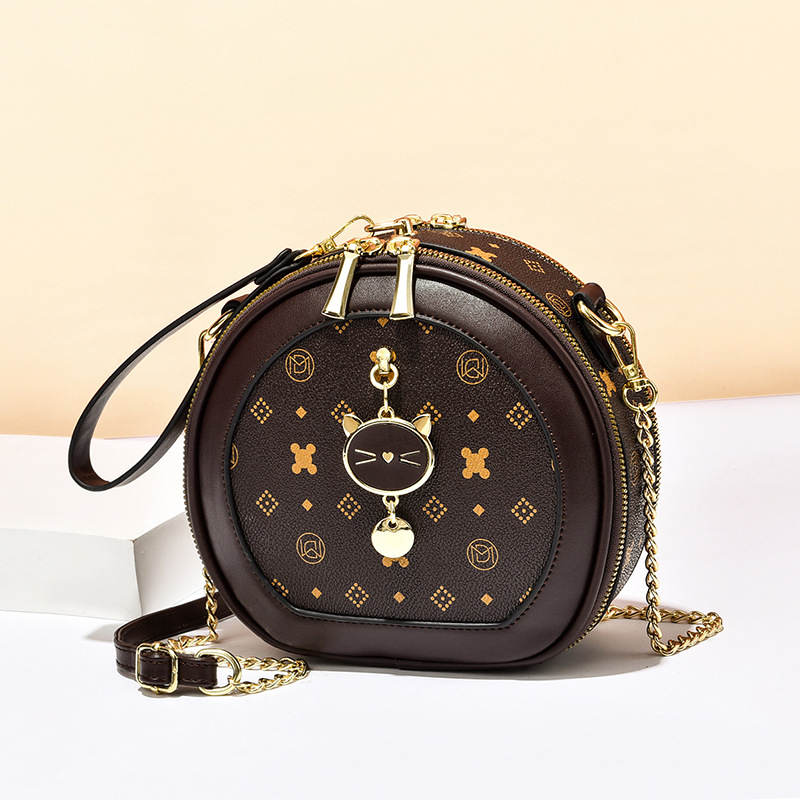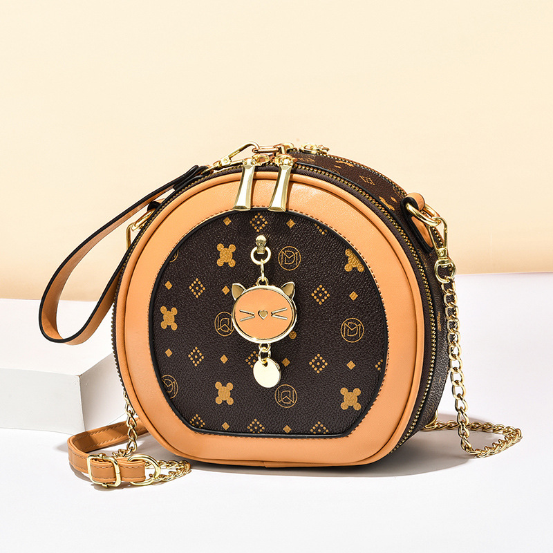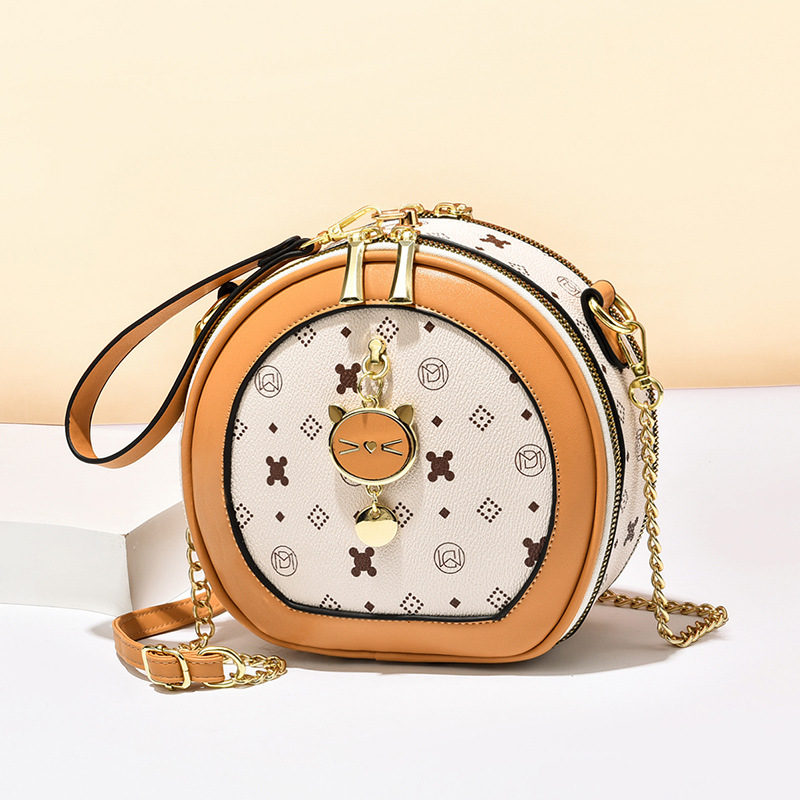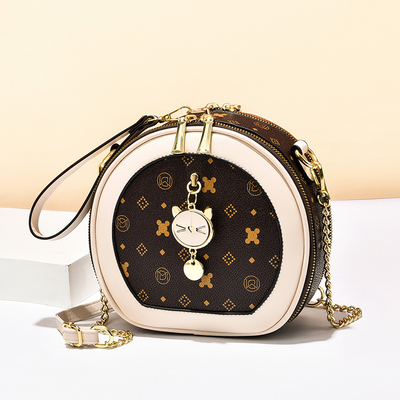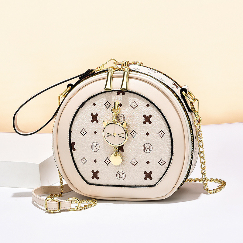 가방 여자의 2023 여름 새로운 유행 간단한 어깨 크로스 바디 가방 질감 체인 작은 라운드 가방 시계 가방 여자의 머리스토어 가기